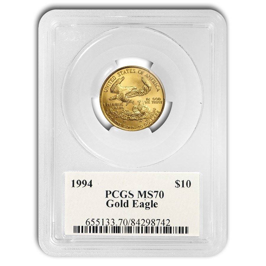 1994 1/4 oz Gold American Eagle MS-70 PCGS (Art Deco Label)