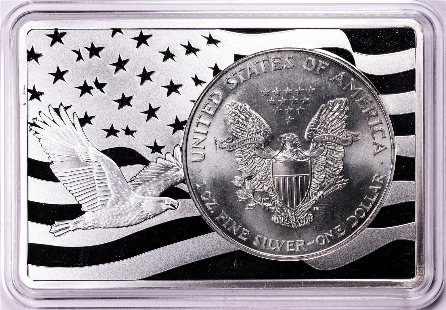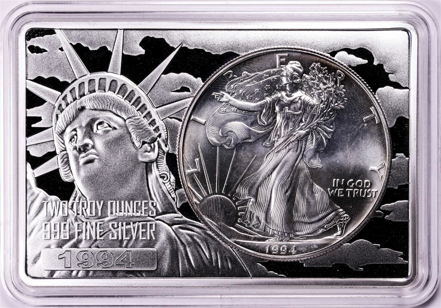 One 1994 $1 American Silver Eagle Coin & 2oz Silver Bar Set.