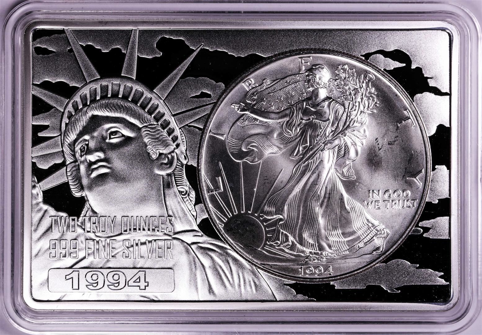 One 1994 $1 American Silver Eagle Coin & 2oz Silver Bar Set.