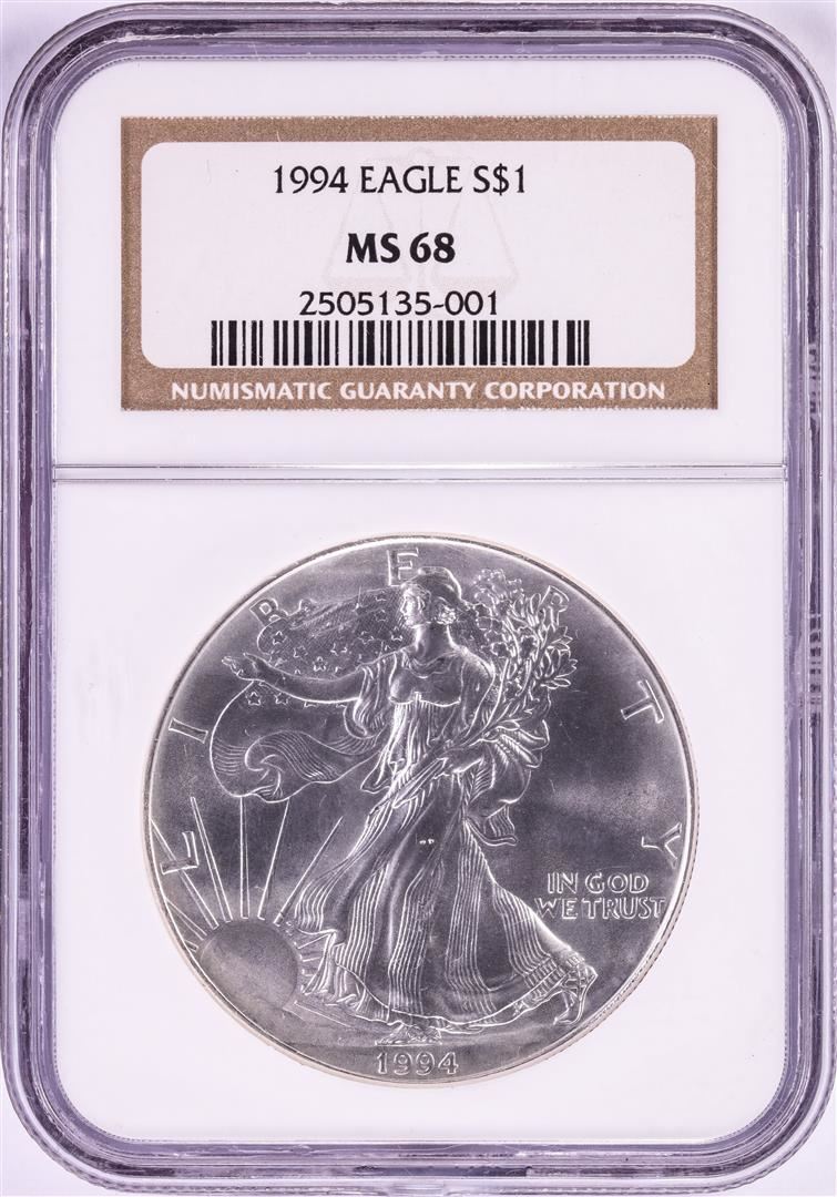 One 1994 $1 American Silver Eagle Coin NGC MS68. NGC Certified.