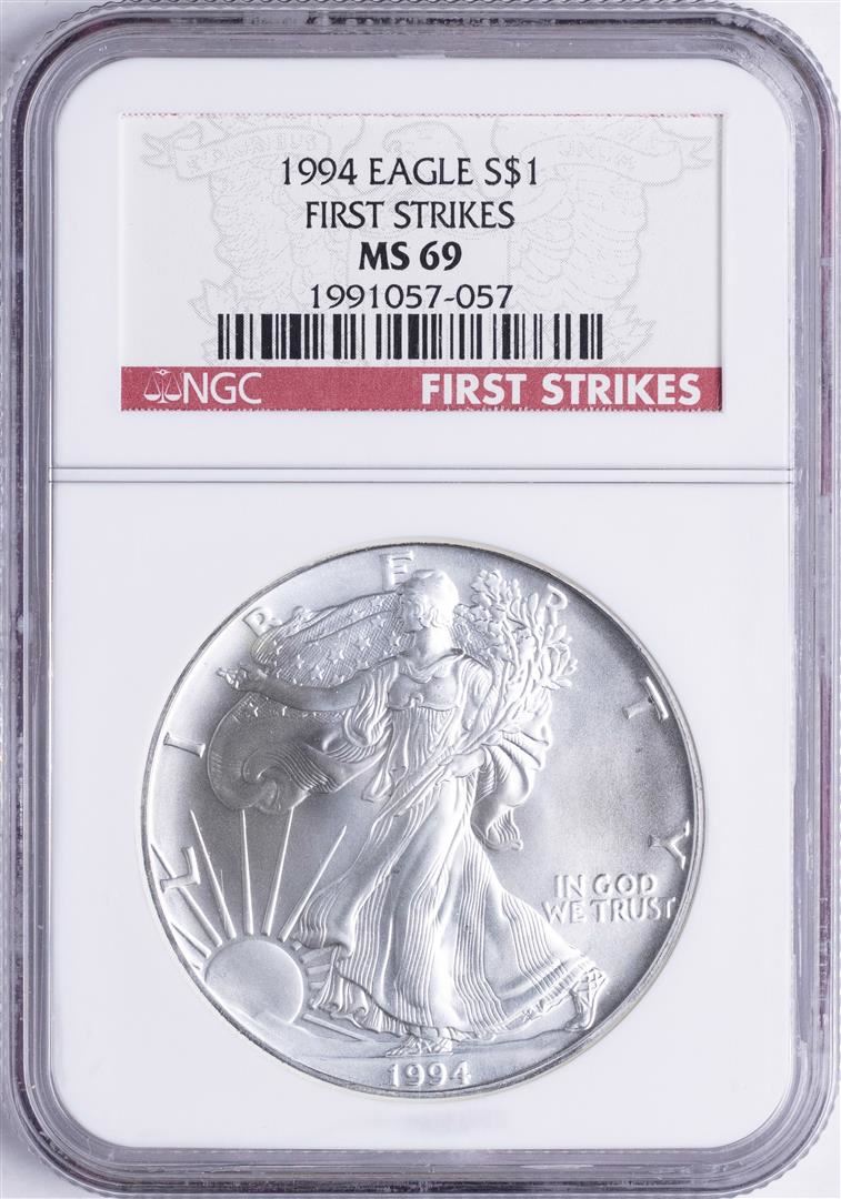 One 1994 $1 American Silver Eagle Coin NGC MS69 First Strikes. NGC Certified.