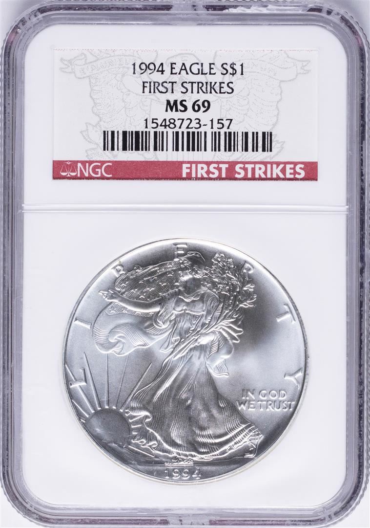 One 1994 $1 American Silver Eagle Coin NGC MS69 First Strikes. NGC Certified.