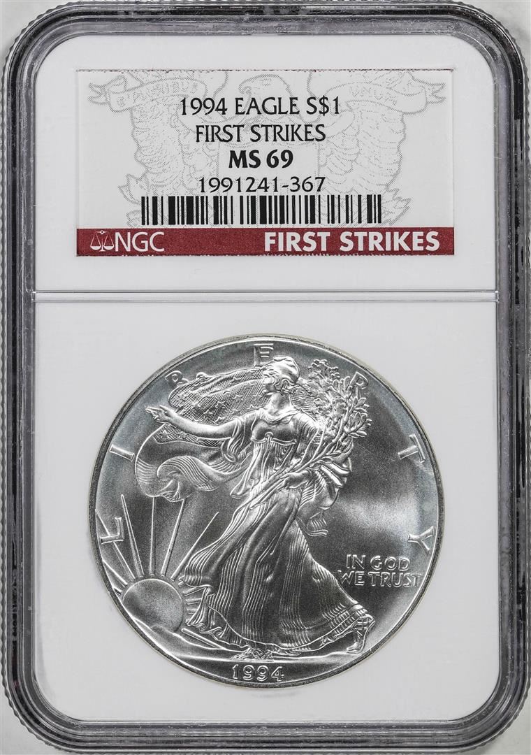 One 1994 $1 American Silver Eagle Coin NGC MS69 First Strikes. NGC Certified.