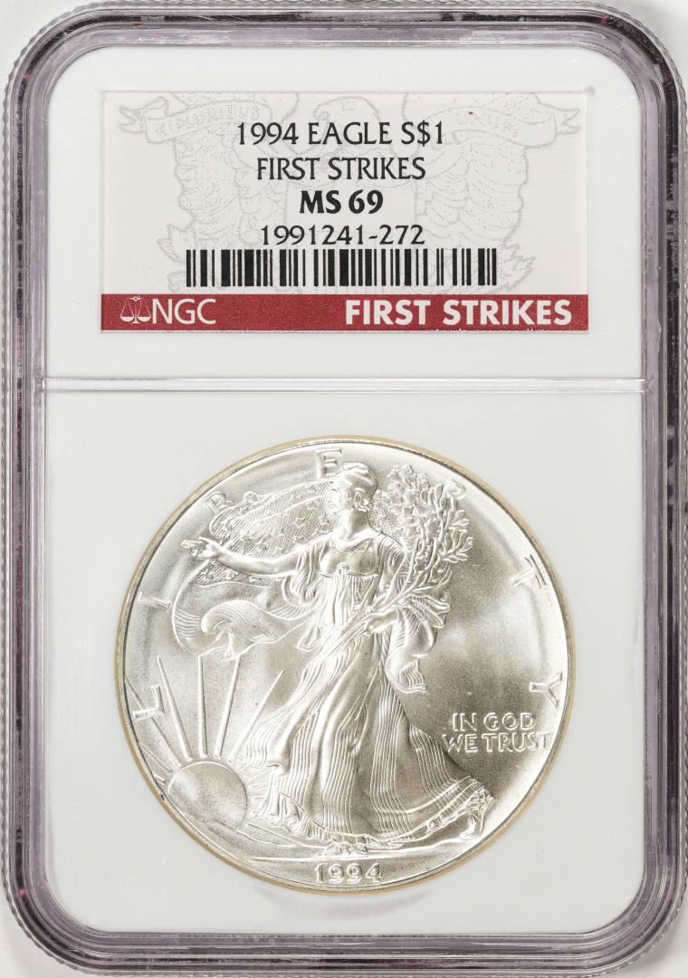One 1994 $1 American Silver Eagle Coin NGC MS69 First Strikes. NGC Certified.