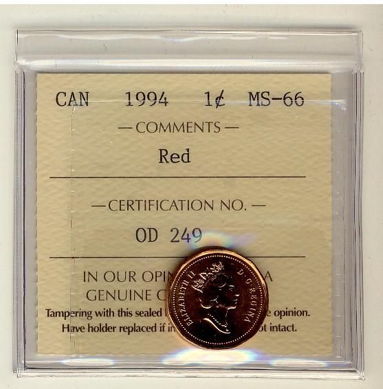 1994 1¢ ICCS MS66 Full Red, A superb GEM example.