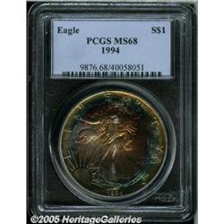1994 $1 Silver Eagle MS68 PCGS. Vivid peach, lime