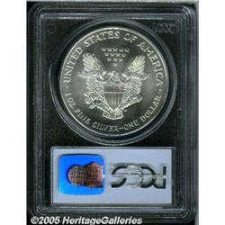 <B>1994<img border='0' src='http://www.heritagecoins.com/images/star.gif' width=10 height=10>$1 Silver Eagle MS68 PCGS.</B></I> Vivid peach, lime, magenta, and orange colors form concentric rings across the obverse, while the reverse is fully brilliant.