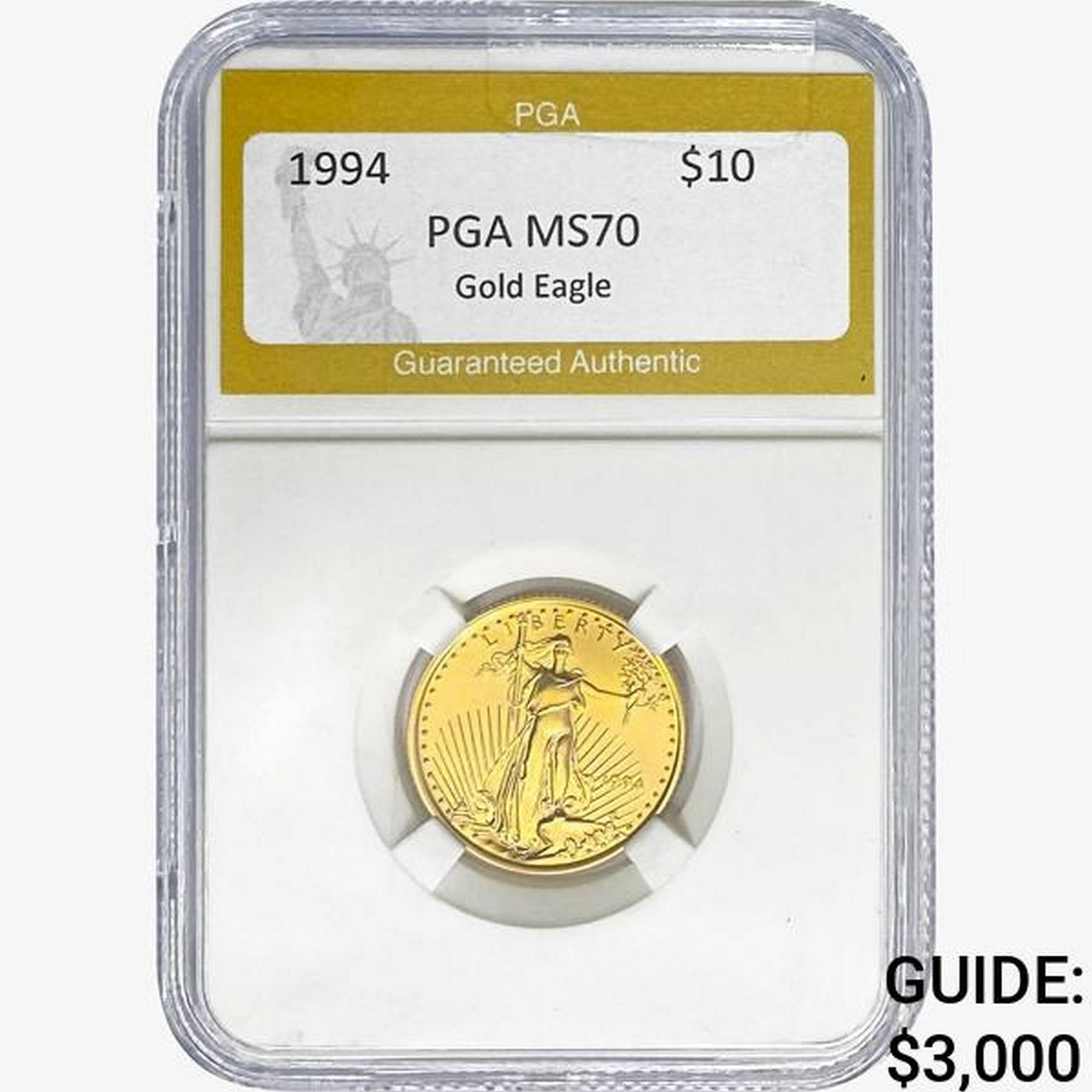 1994 $10 GOLD EAGLE 1/4 OZ PGA MS70