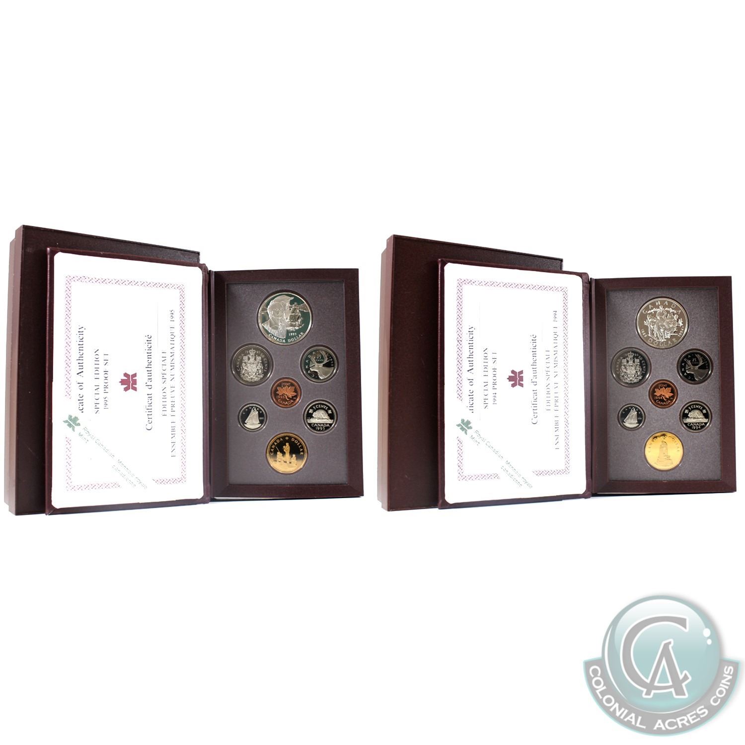 1994 & 1995 Canada Special Edition Red Cover 7-coin Proof Double Dollar Sets. 2pcs