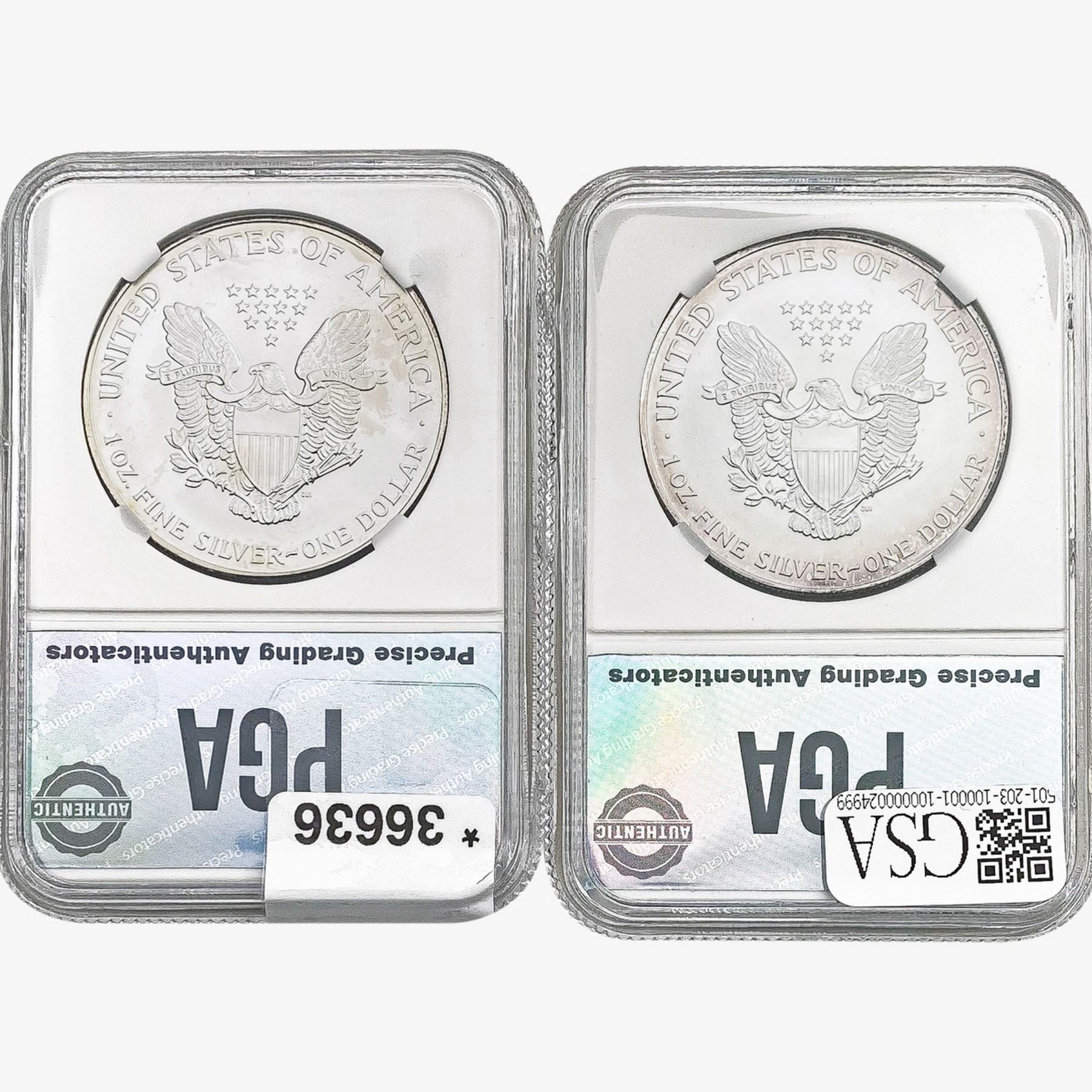 COINS AND CURRENCY LISTED IN GSA’S CATALOG AS GRADED AND ENCAPSULATED BY PCGS, NGC, ANACS, ICG, PCGS CURRENCY, PMG, PCGS BANKNOTE GRADING, CMC OR ANY OTHER THIRD-PARTY GRADING SERVICE ARE LIKEWISE SOLD “AS-IS” EXCEPT AS EXPRESSLY SET FORTH HEREIN. ALL THIRD-PARTY GRADING SERVICE GUARANTEES, INCLUDING AUTHENTICITY, ARE THE SOLE RESPONSIBILITY OF THE THIRD-PARTY GRADING SERVICE AND NOT WARRANTIES OR GUARANTEES OF GSA. BIDDERS SHOULD CONTACT THESE THIRD-PARTY GRADING SERVICES DIRECTLY WITH RESPECT TO ANY CLAIMS OR QUESTIONS THEY MAY HAVE CONCERNING THEIR GUARANTEES AND WARRANTIES. BIDDERS ACKNOWLEDGE AND AGREE THAT AUCTIONEER IS NOT BOUND BY OR LIABLE FOR ANY OPINION OR CERTIFICATION BY ANY THIRD-PARTY GRADING SERVICE. REMOVAL OF A PRODUCT FROM ITS PROTECTIVE CASING OR HOLDER OR ALTERATION OF ANY COIN HOLDER WAIVES ALL RIGHTS CONCERNING THE PRODUCT CONTAINED THEREIN.