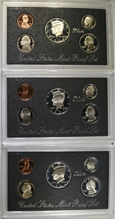 1994, 1997 and 1998 Silver Proof Sets in Original Packaging. ESTIMATE $75 - $100.