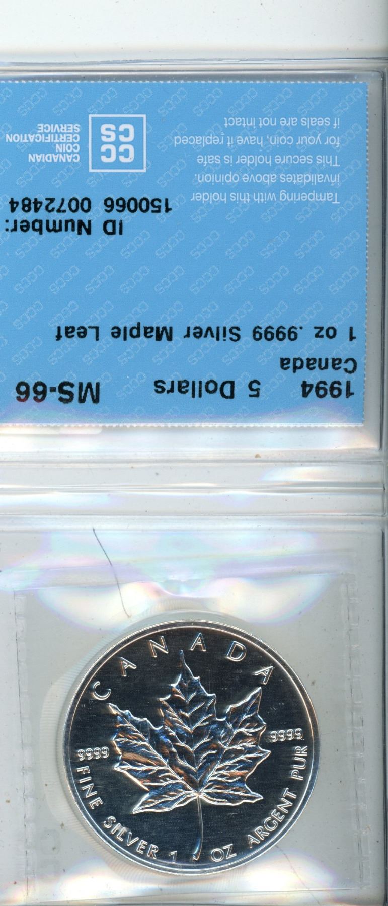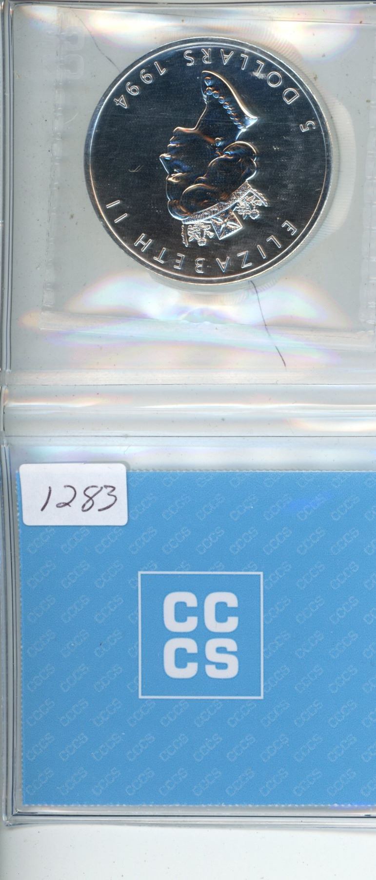 1994 $5 Canadian Dollar MS-66 1 OZ .9999 Silver Maple Leaf