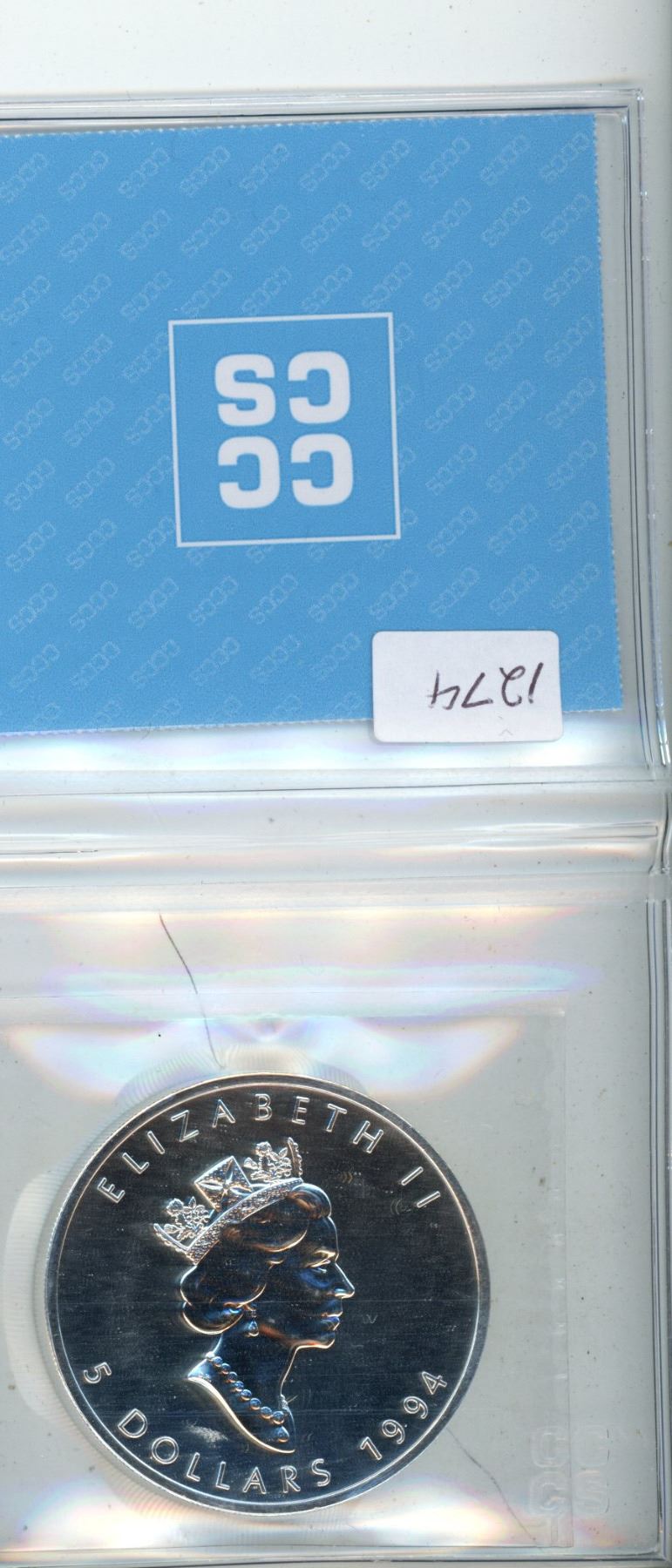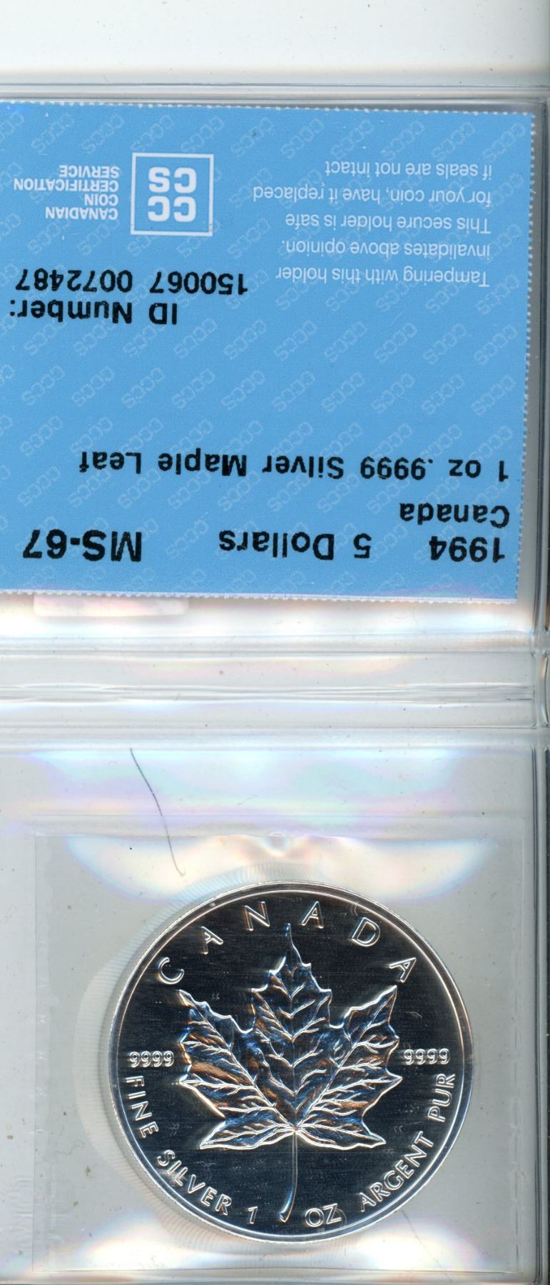 1994 $5 Canadian Dollar MS-67 1 oz .999 Silver