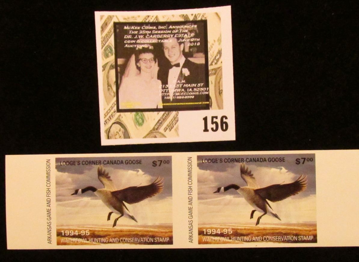 1994-95 Mint, Unsigned Arkansas Game and Fish Commission Waterfowl Hunting and Conservation attached line pair of $7.00 stamps.