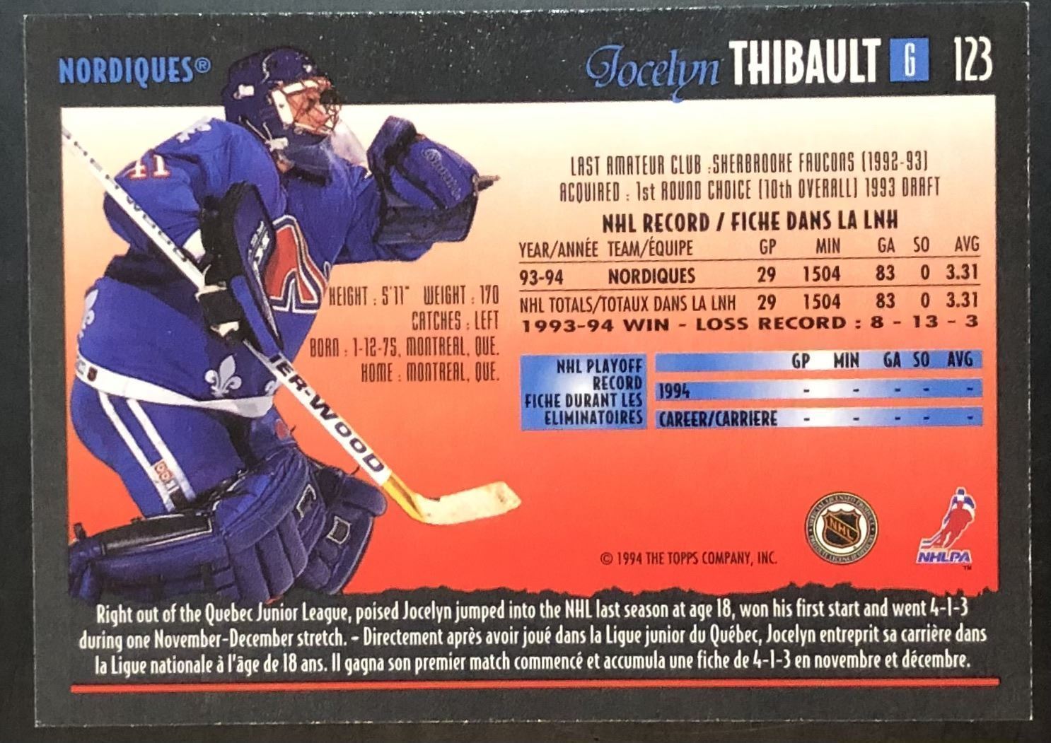 Card #123 OPC, NHL, hockey, rookie