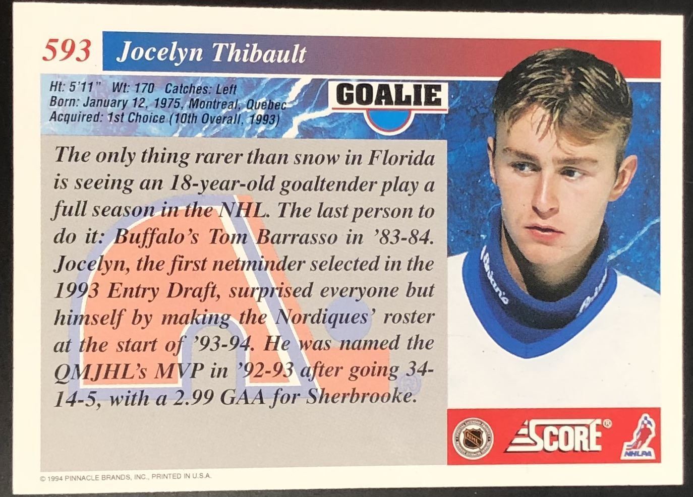 Card #593 NHL, hockey, rookie