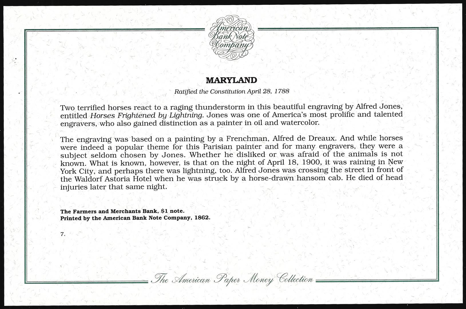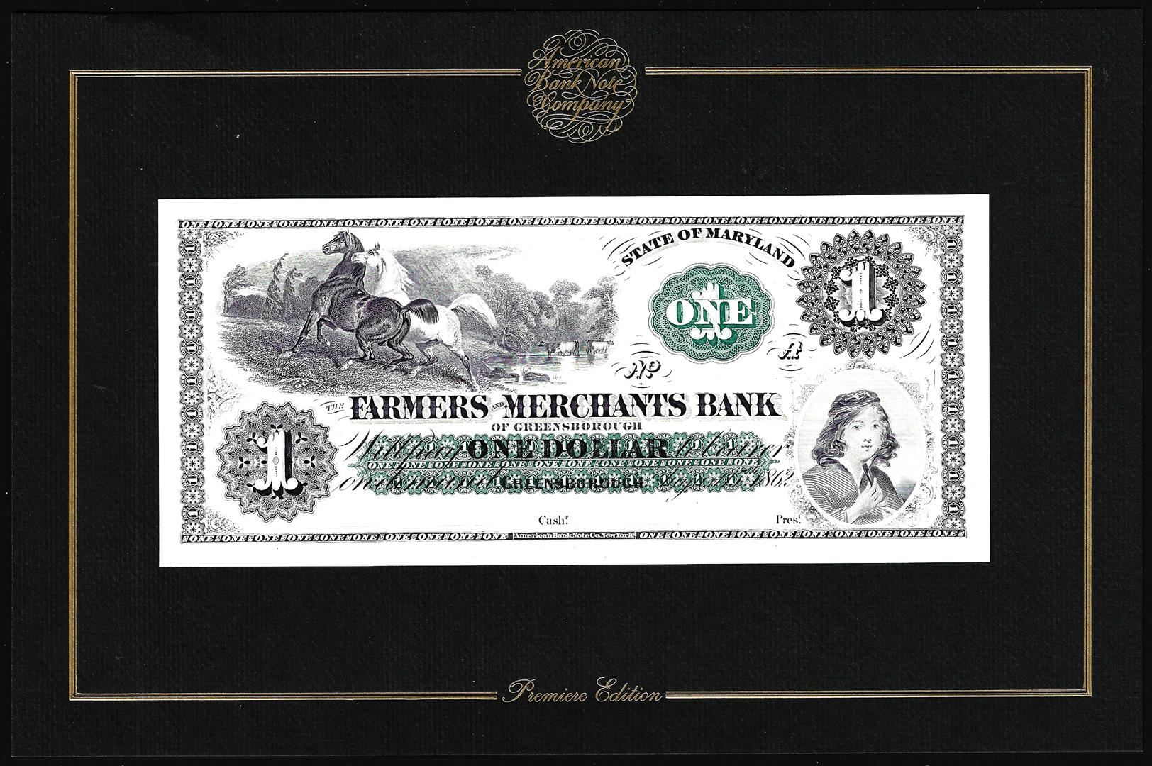 1994 ABN Co. Intaglio Print Farmers & Merchants Bank Greensborough, MD