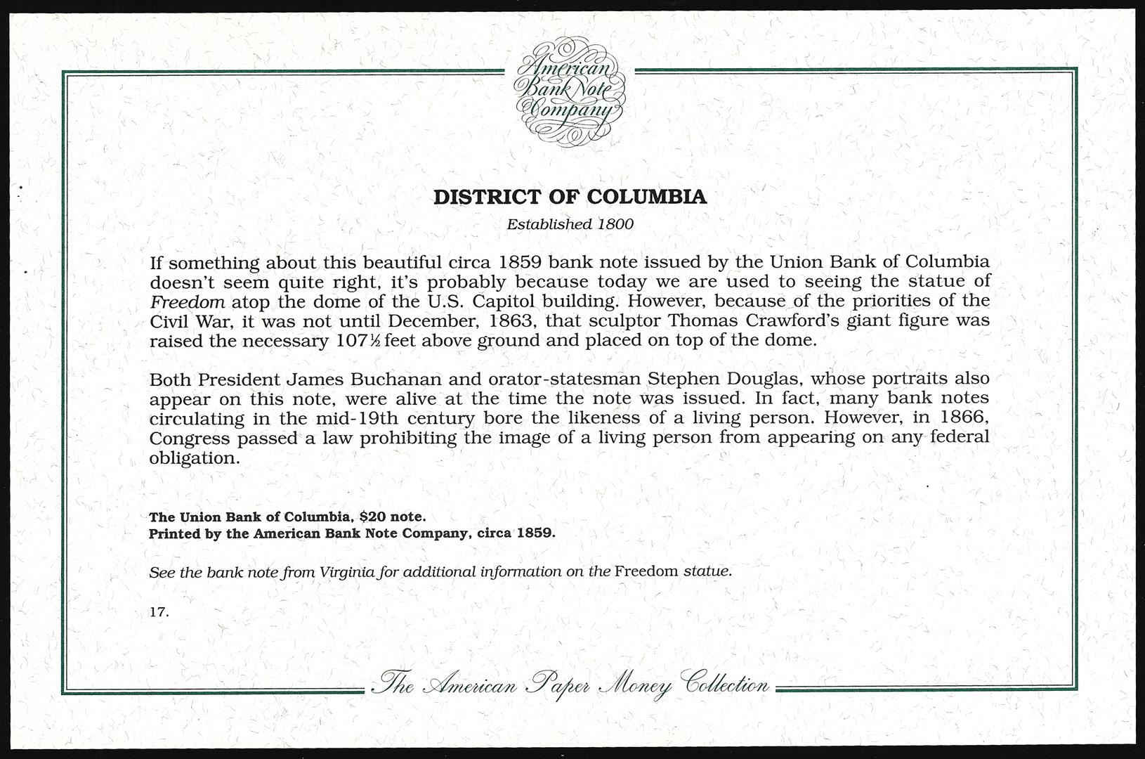 One 1994 ABN Co. Intaglio Print Union Bank of Columbia Washington, D.C..