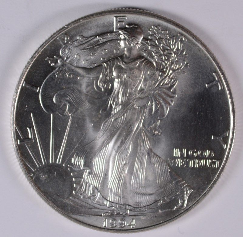 1994 AMERICAN SILVER EAGLE, GEM UNC. BETTER DATE!! OUT OF AN ORIGINAL MINT TUBE