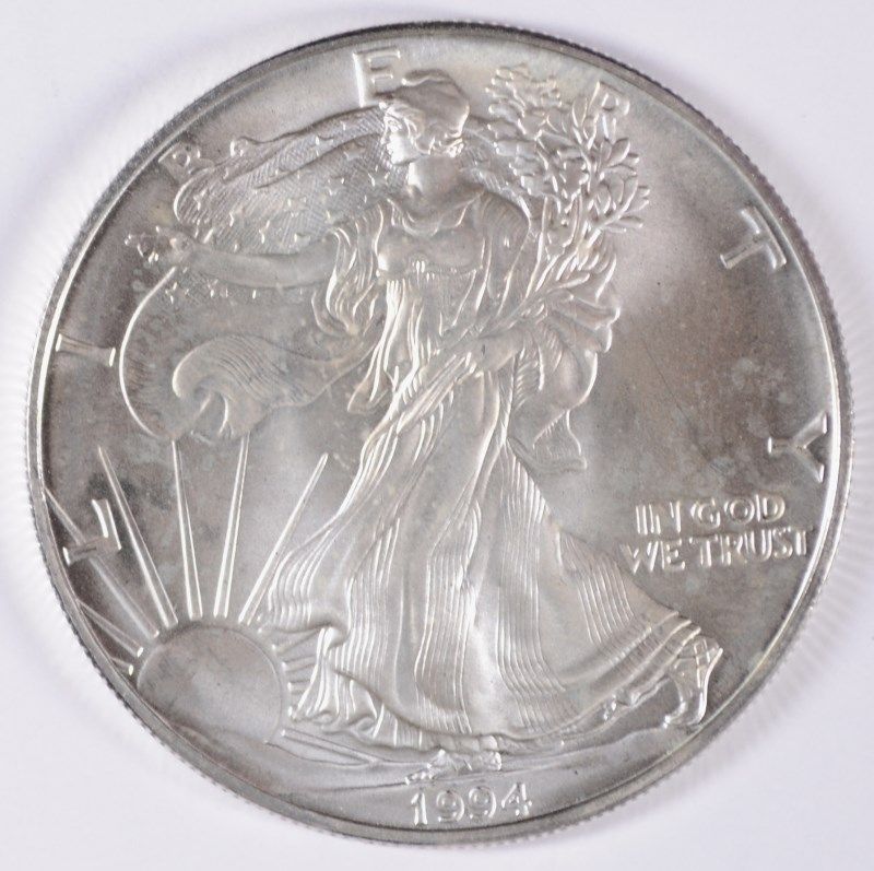 1994 AMERICAN SILVER EAGLE, GEM UNC. BETTER DATE!! OUT OF AN ORIGINAL MINT TUBE