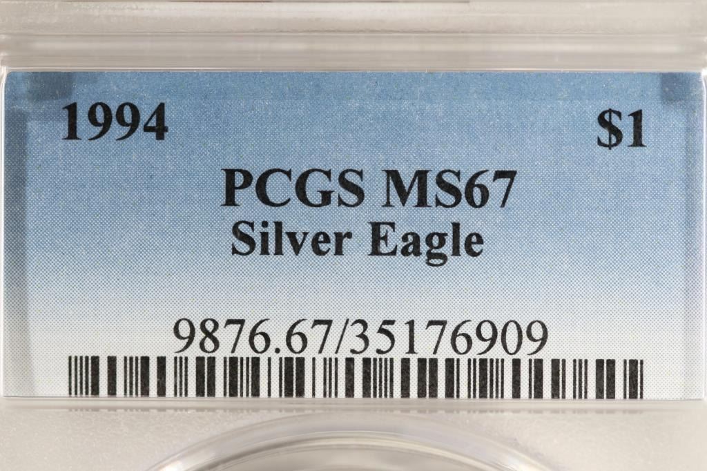 1994 AMERICAN SILVER EAGLE PCGS MS67