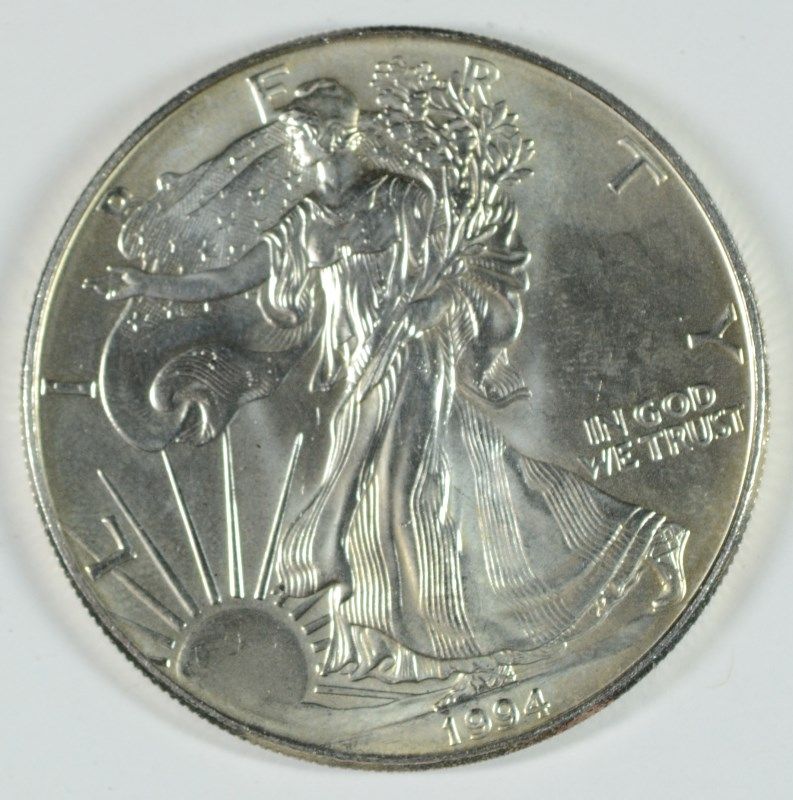 1994 AMERICAN SILVER EAGLE, UNC. BETTER DATE!! OUT OF AN ORIGINAL MINT TUBE