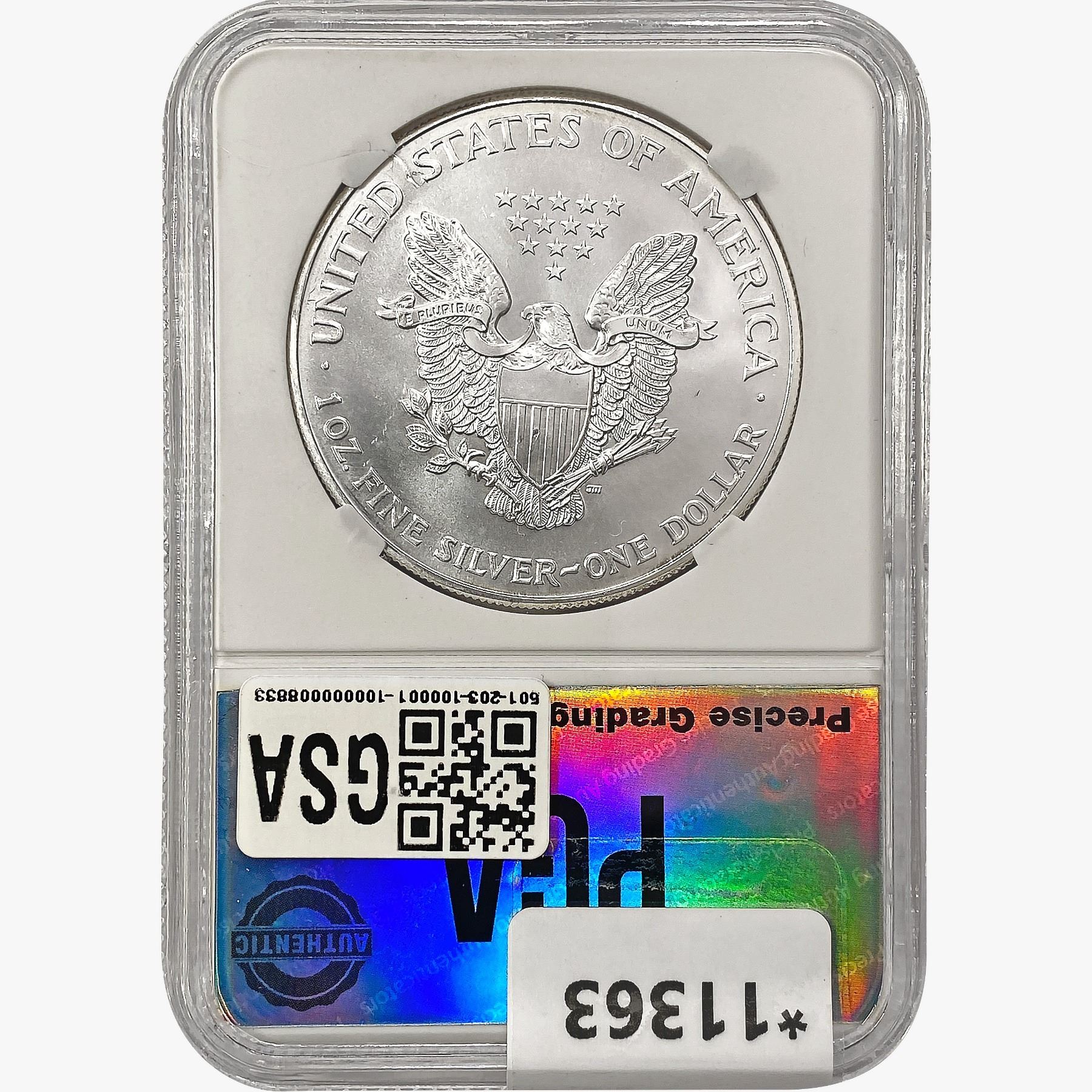 e. Coins sold referencing a third-party grading service are sold “AS IS” without any express or implied warranty, except for a guarantee by GSA that they are genuine. Removal or alteration of the holder, voids all of Bidder’s claims concerning that Product. Certain warranties may be available from the grading services and Bidders are referred to them for further details: Numismatic Guaranty Corporation (NGC), PO Box 4776, Sarasota, FL 34230, www.ngccoin.com/services/writtenguarantee.asp; Professional Coin Grading Services (PCGS), PO Box 9458, Newport Beach, CA 92658, www.pcgs.com/guarantee.html; ANACS, 6555 S. Kenton St., Ste. 303, Englewood, CO 80111; and Independent Coin Grading Co. (ICG), 7901 East Bellview, Ave., Suite 50, Englewood, CO 80111.