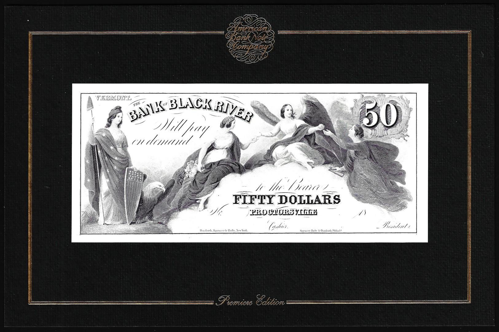 One 1994 American Bank Note Company Intaglio Print Bank of Black River Proctorsville, VT.