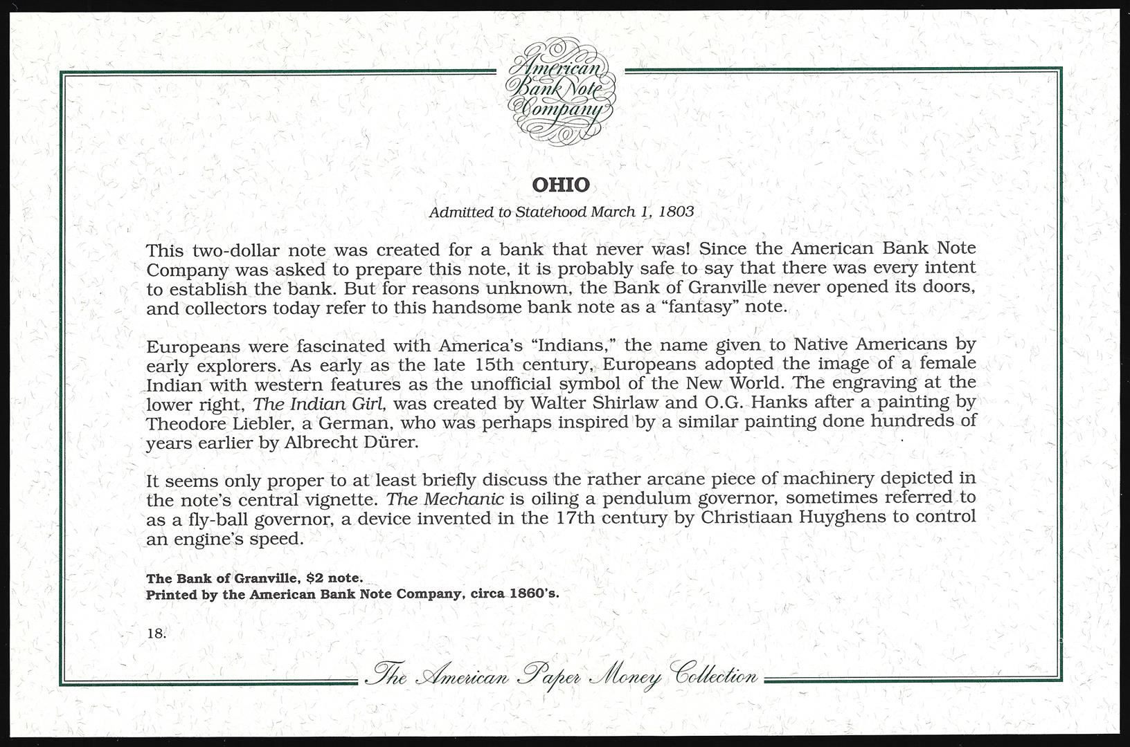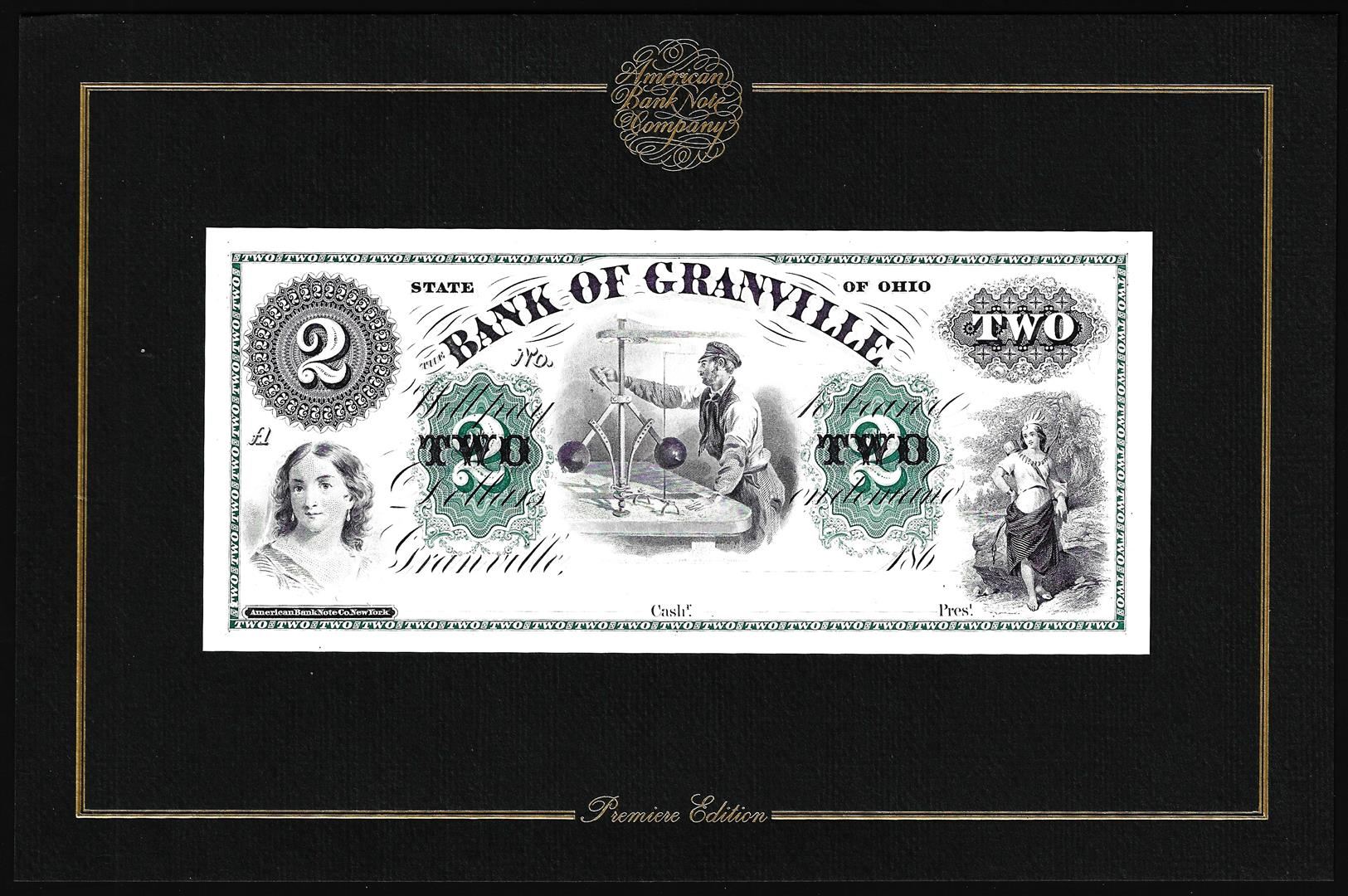 One 1994 American Bank Note Company Intaglio Print Bank of Granville Ohio.