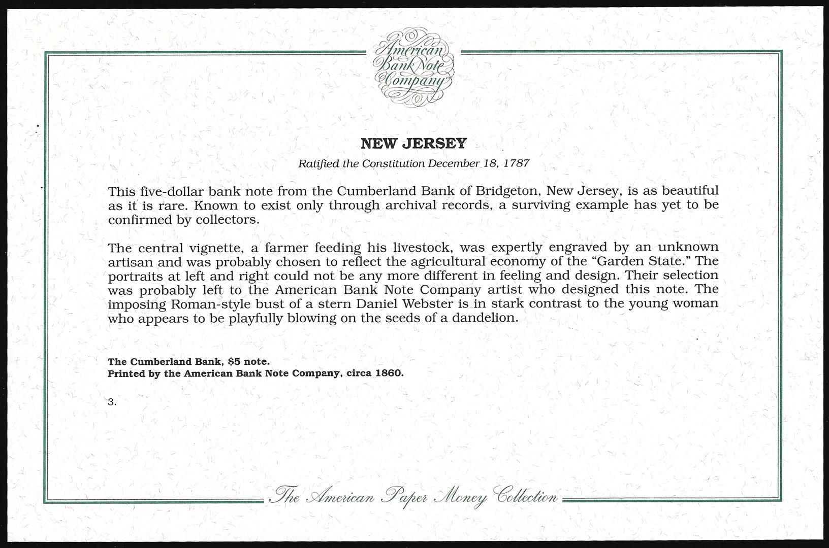 One 1994 American Bank Note Company Intaglio Print Cumberland Bank of Bridgeton, NJ.