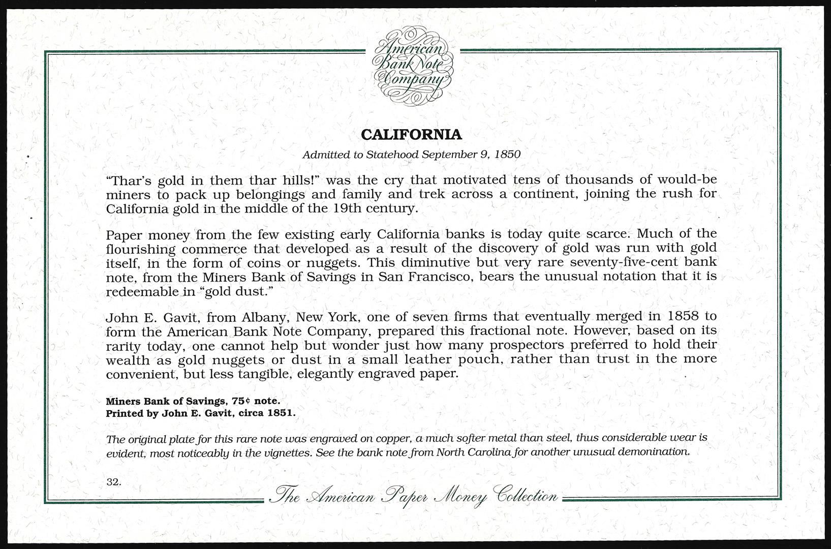 1994 American Bank Note Company Intaglio Print Miners Bank of Savings of Alta, CA