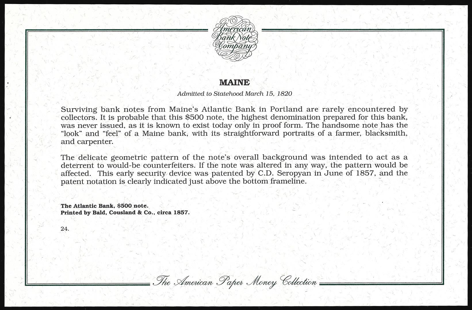 1994 American Bank Note Company Intaglio Print The Atlantic Bank Portland, ME