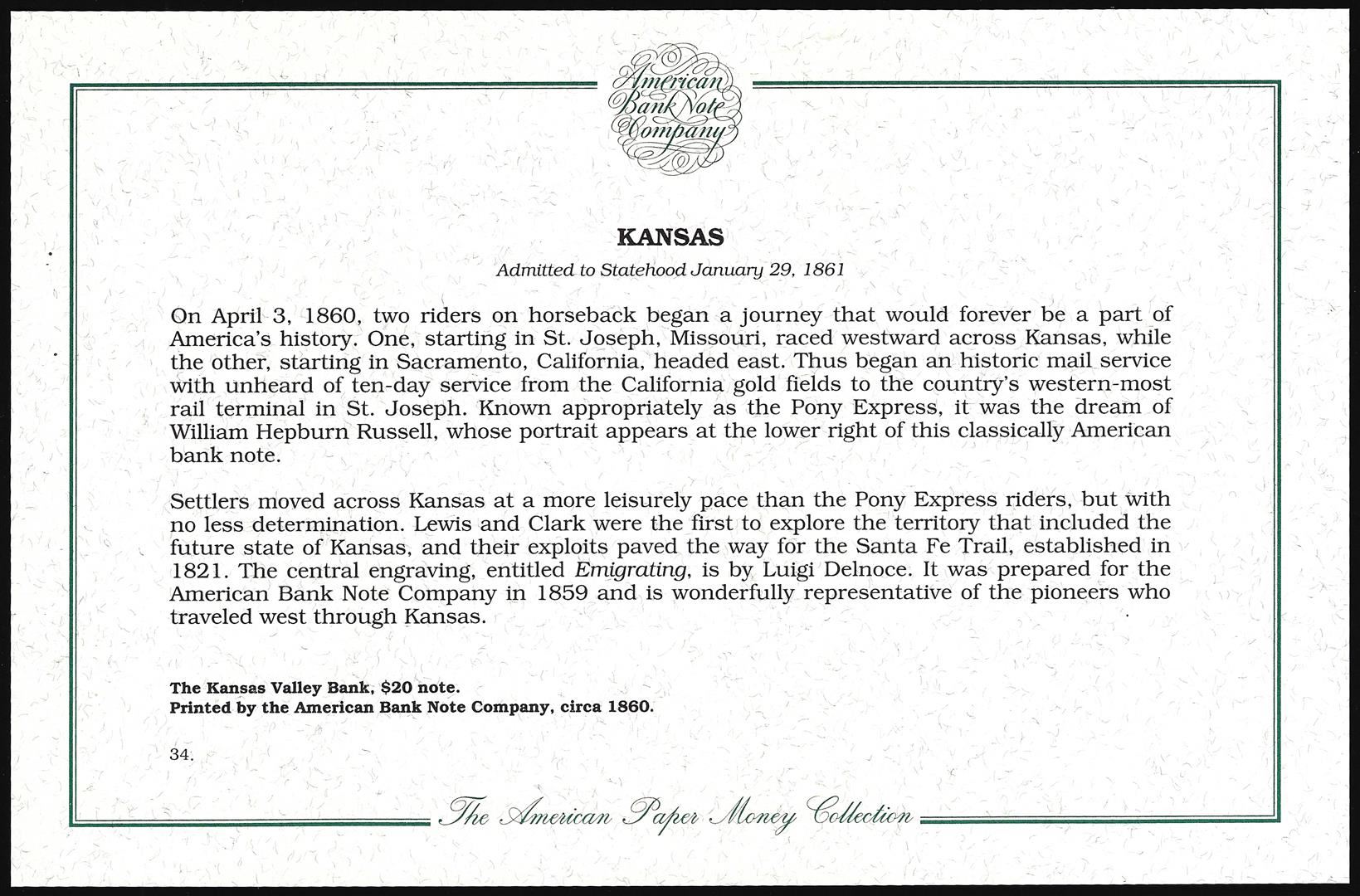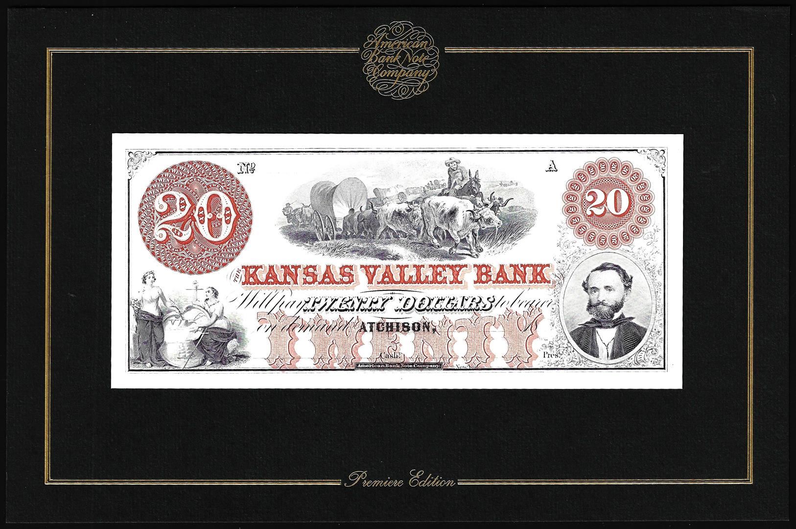 One 1994 American Bank Note Company Intaglio Print The Kansas Valley Bank Atchison, KS.
