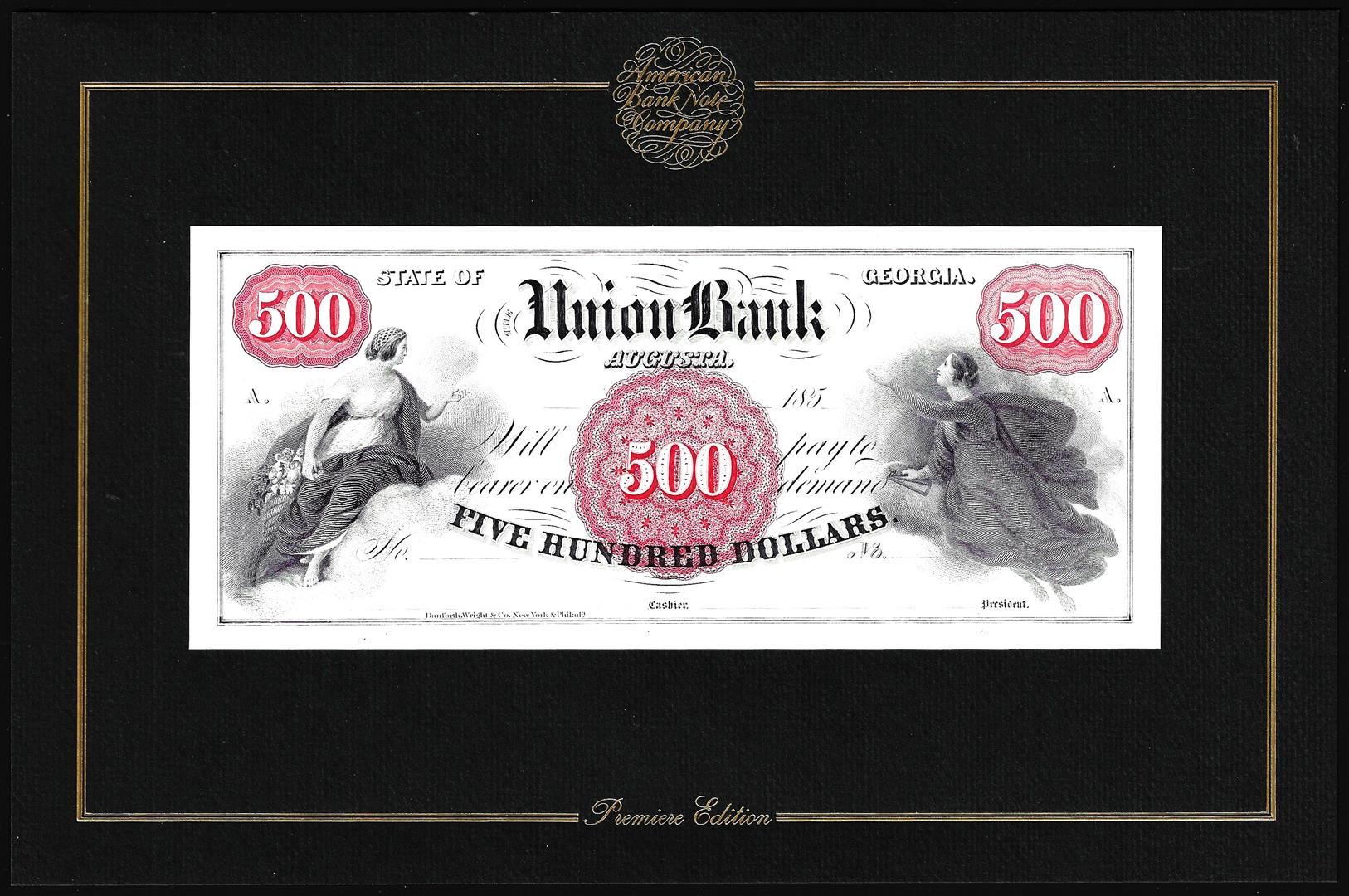 One 1994 American Bank Note Company Intaglio Print Union Bank Augusta, GA.