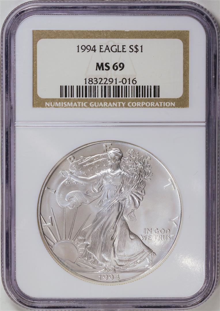 One 1994 American Silver Eagle .999 Fine Silver Dollar Coin NGC MS69.