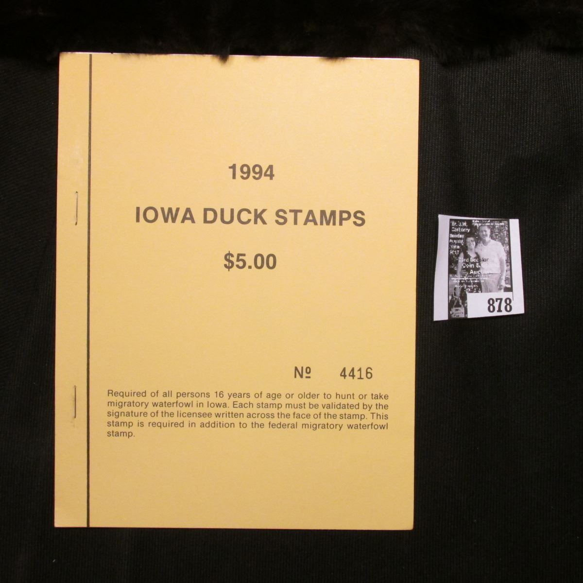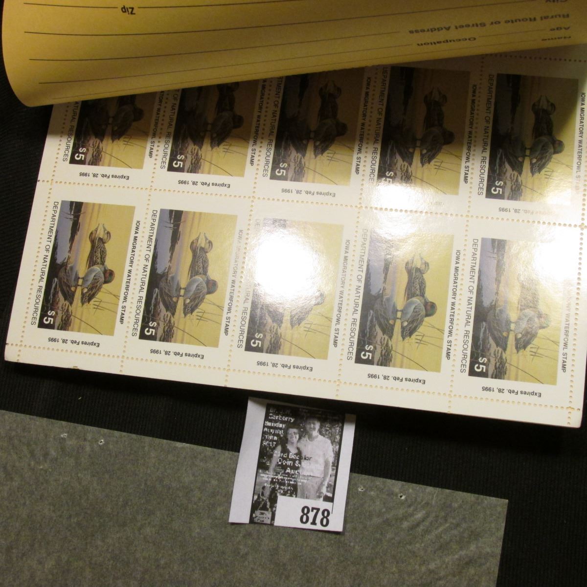 1994 Booklet Pane of Ten Iowa Duck Stamps in folder No. 4416. Crisp Uncirculated.