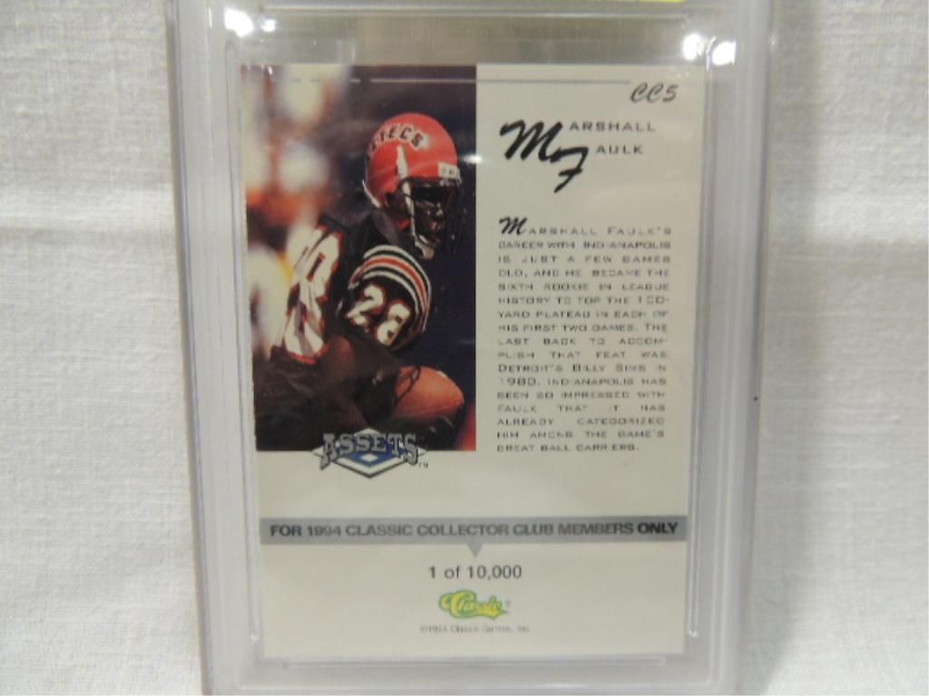 1994 CLASSIC #CC5 FOOTBALL CARD MARSHALL FAULK. GRADED PRISTINE 10 BY PRO. AS SHOWN. VIEW PICTURE FOR DETAIL.