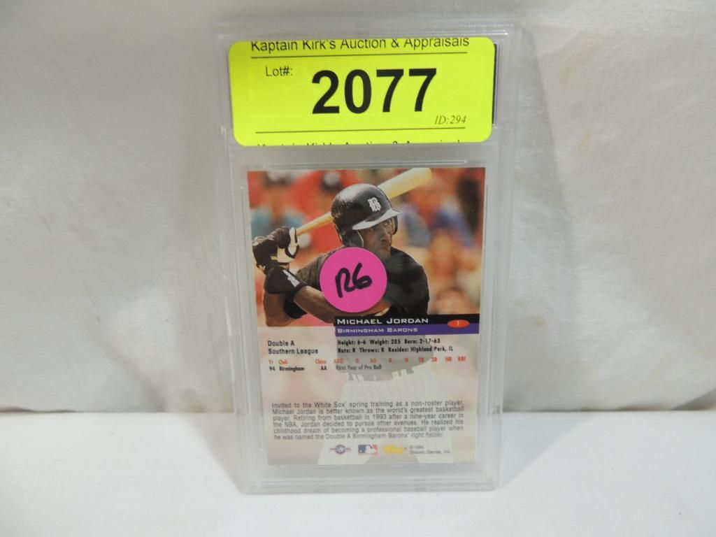1994 CLASSIC MICHAEL JORDAN #1 BIRMINGHAM BARONS GRADED NM0MT BASEBALL COLLECTIBLE TRADING CARD GOOD CONDITION. PROTECTIVE CASE. BASEBALL MEMORABILIA. PLAYER CARD. AS SHOWN SEE PHOTO FOR MORE DETAILS.