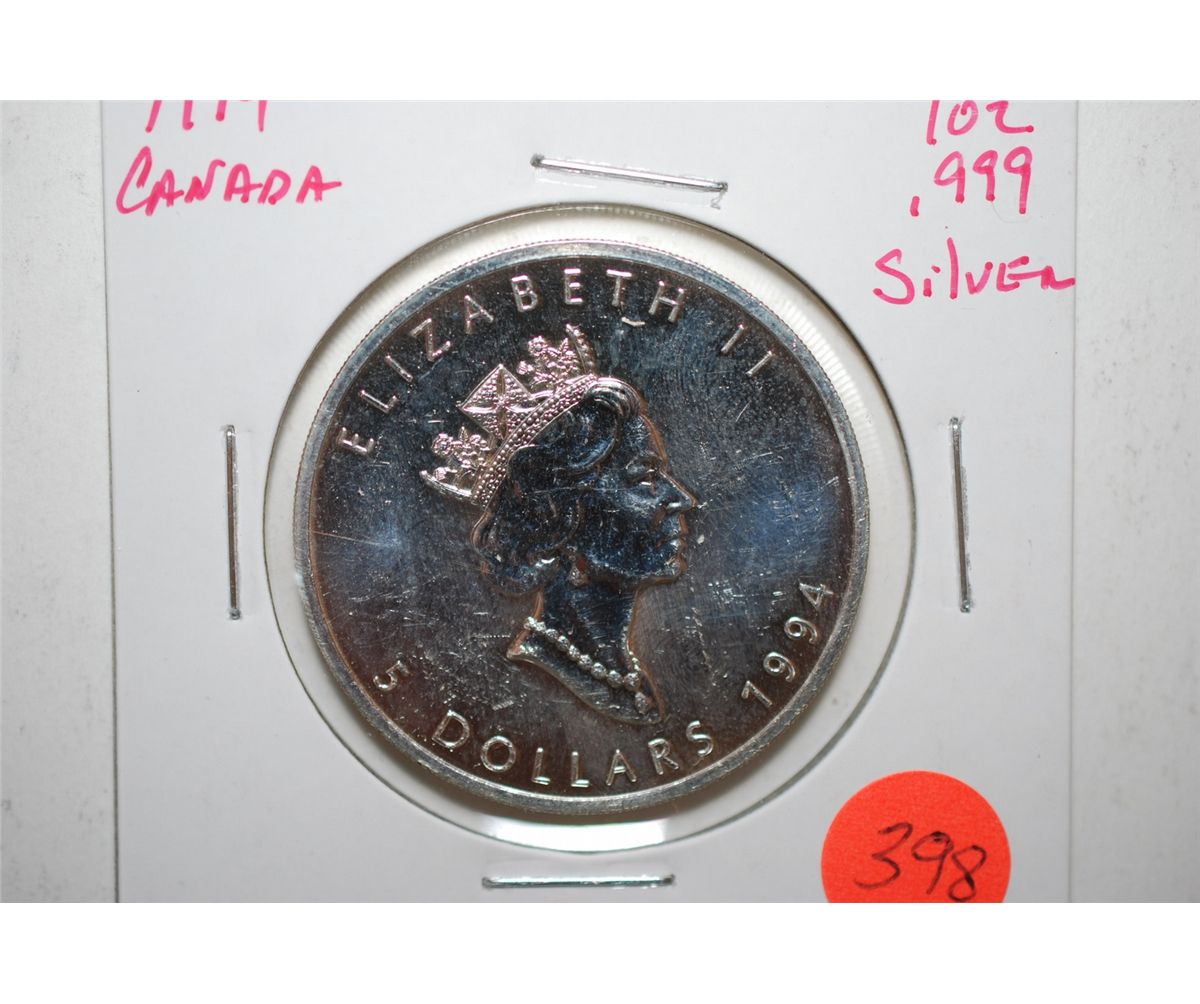 1994 Canada $5 "Maple Leaf" Foreign Coin; 9999 Silver 1 Oz.; EST. $30-40