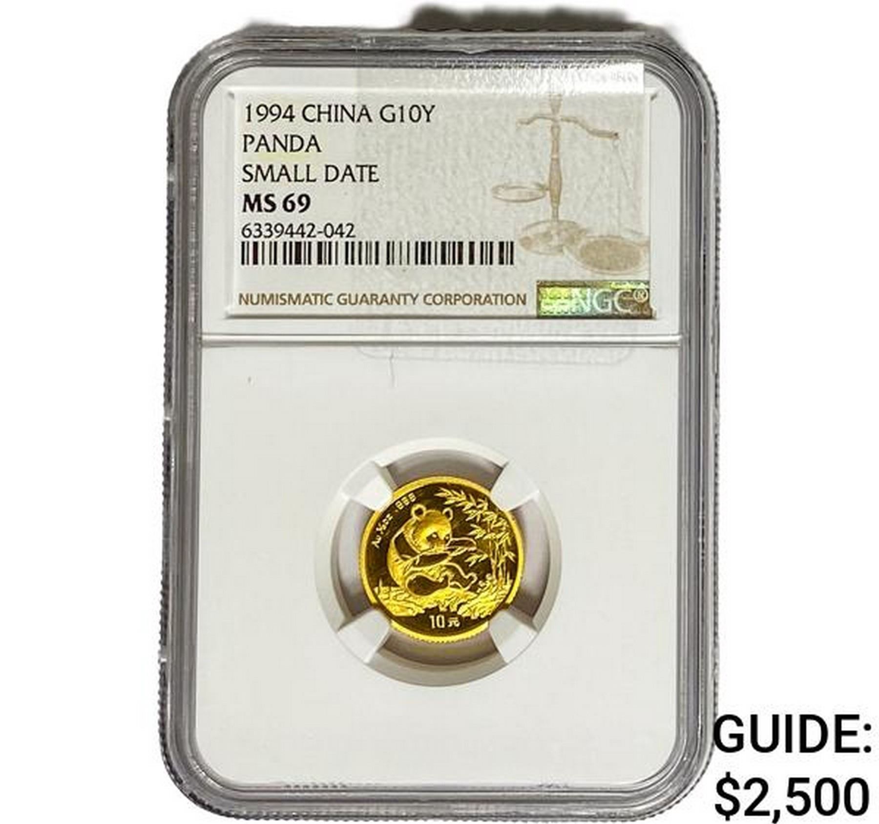 1994 China Gold 10 Yen Panda SM. Date NGC MS69