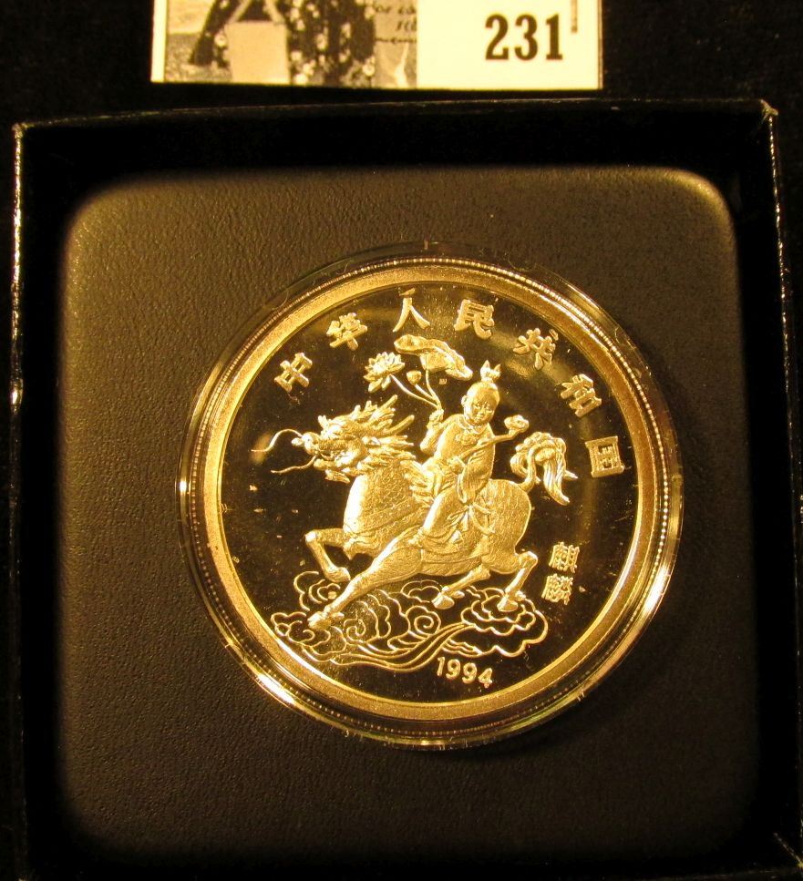 1994 Chinese 10 Yuan 1 oz. Unicorn Silver Uncirculated Coin in original box with litterature.