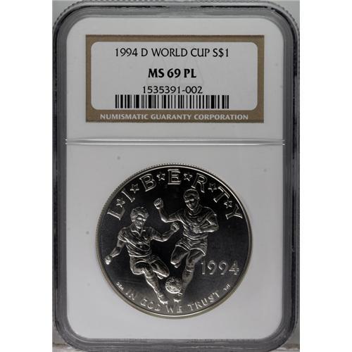 1994-D $1 World Cup Silver Dollar MS69 NGC. NGC Census