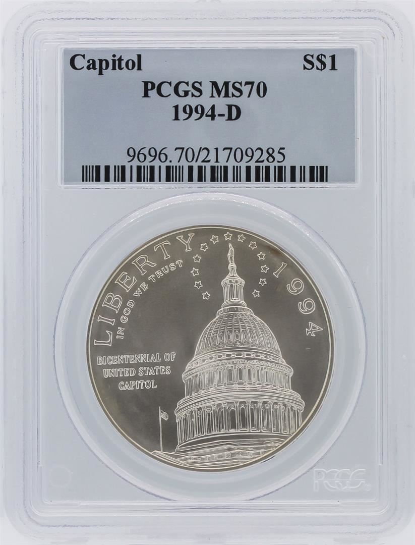 One 1994-D PCGS Graded MS70 US Capitol Commemorative Silver Dollar. PCGS Certified.
