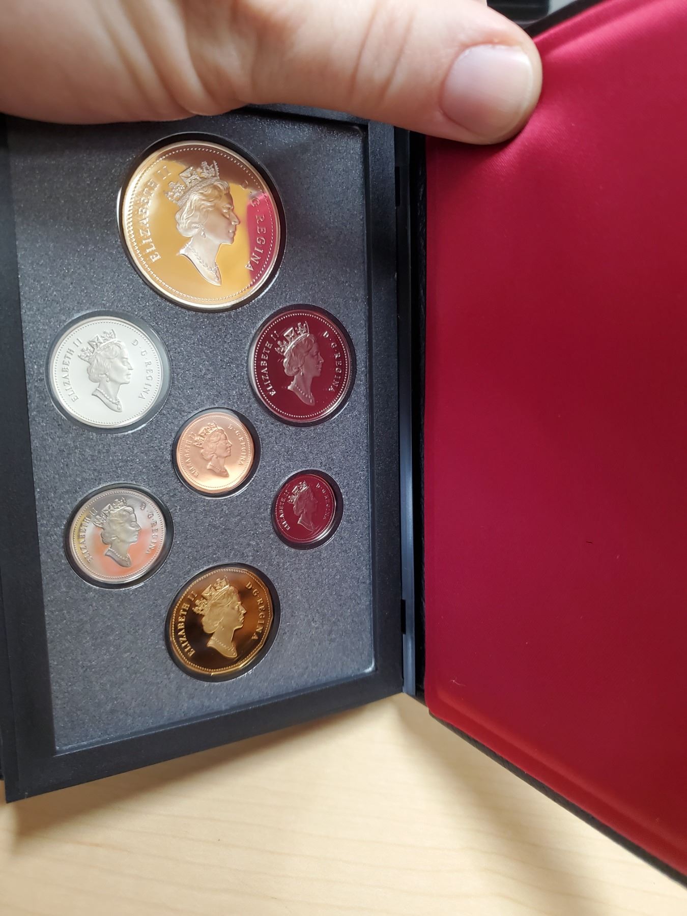 1994 Double Dollar Proof Set. 7-coin set includes RCMP Northern Dog Team Silver Dollar. Proof with Ultra Heavy Cameos. Housed in its original case & box of issue.
