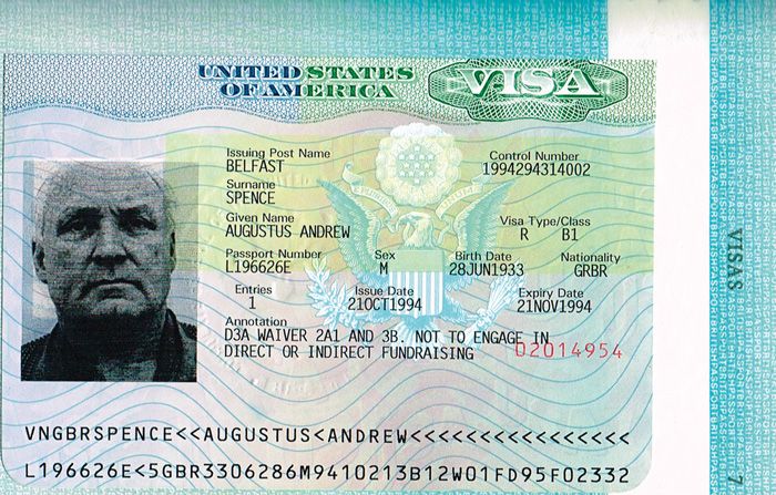 Collection of items relating to the 1994 visit of Spence to the United States of America. Including 1985 British Passport joint passport of Spence and his wife Louie complete with United States visa noting that Spence is "not to engage in direct or indirect fundraising". Also with photographs of the visit, letters from Jerry Dunfey, President of the New England Circle, William J. Flynn of New York stating that Spence "played a key role in the peace process... I am proud to call you a friend" and John Fitzpatrick, Senior Vice President of Fitzpatrick Hotels. A historically interesting collection of items relating to an important period in the peace process and at the time of the declaration of a loyalist ceasefire'.