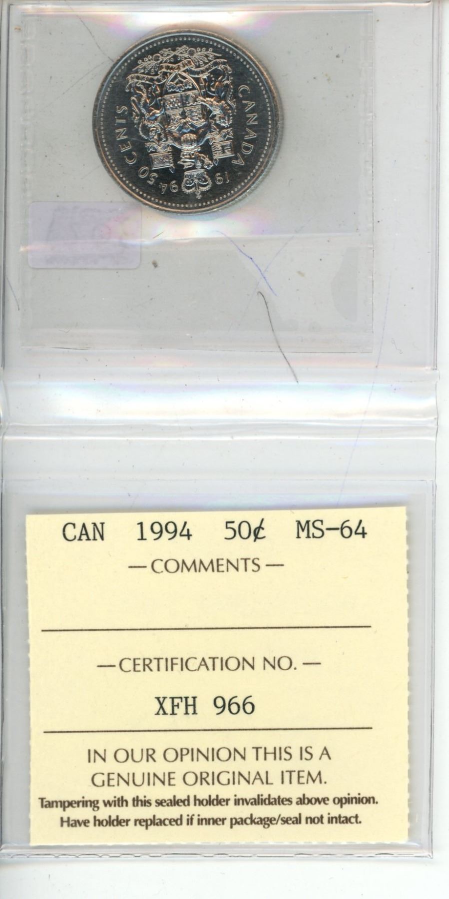 1994 ICCS Graded - Canadian Fifty Cent - MS64