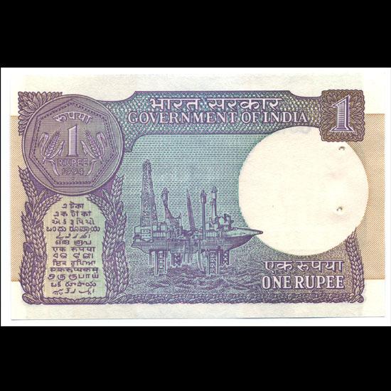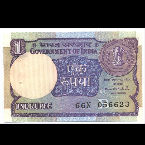 Scarce 1994 India 1 Rupee note set; 3 sequential serial numbers; Gem crisp uncirculated; customary Mint staple holes