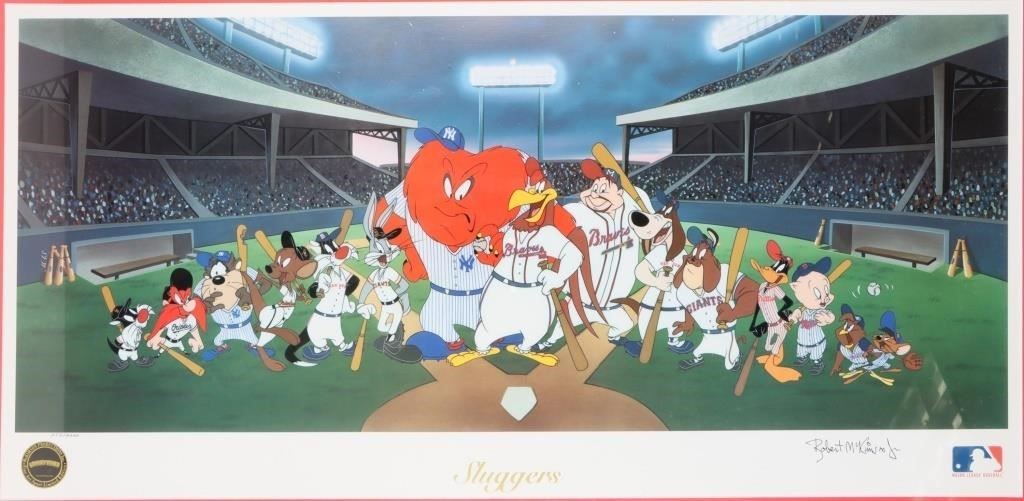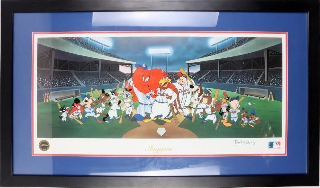 1994 Looney Tunes MLB Sluggers Print Signed by Robert McKimson Jr. Limited Edition Print 0553/2000. In classic black frame.