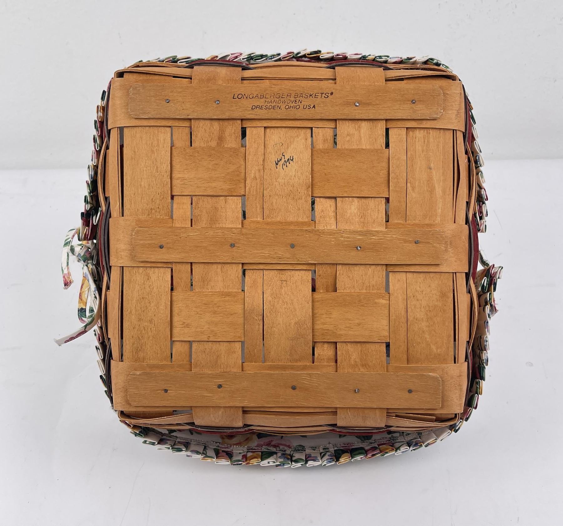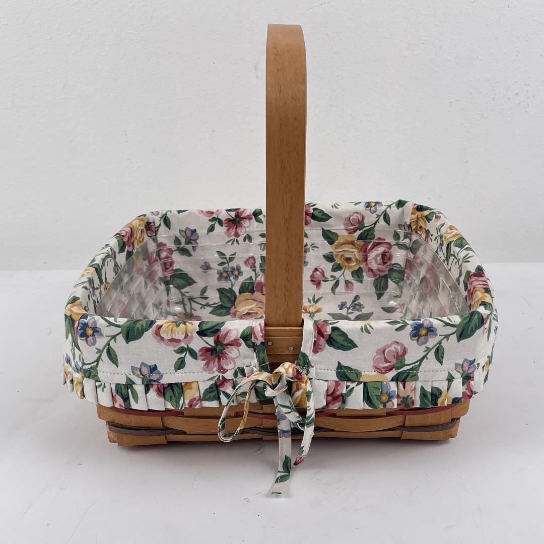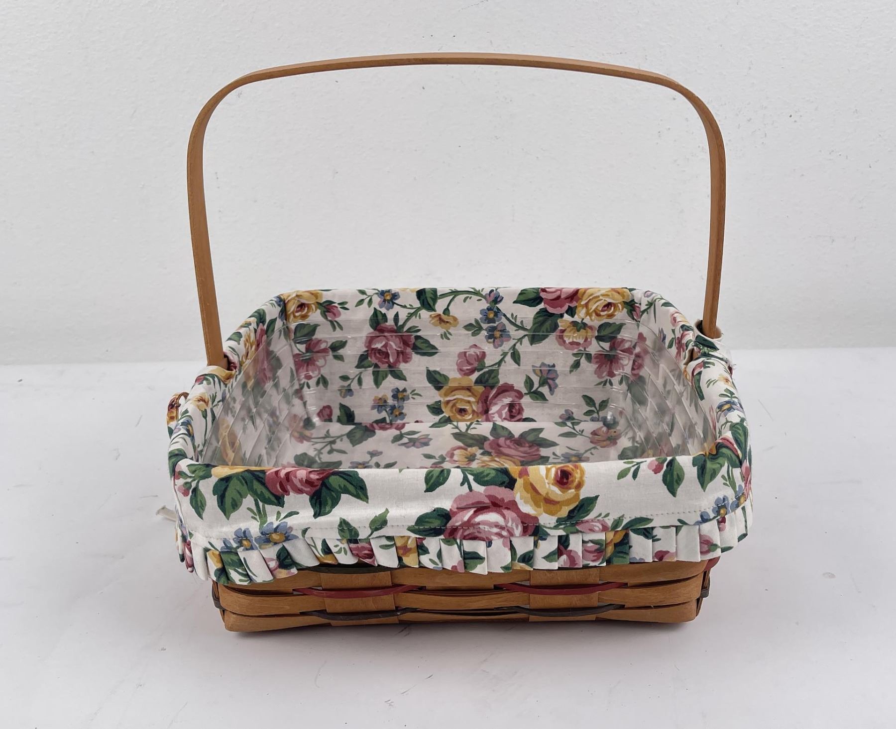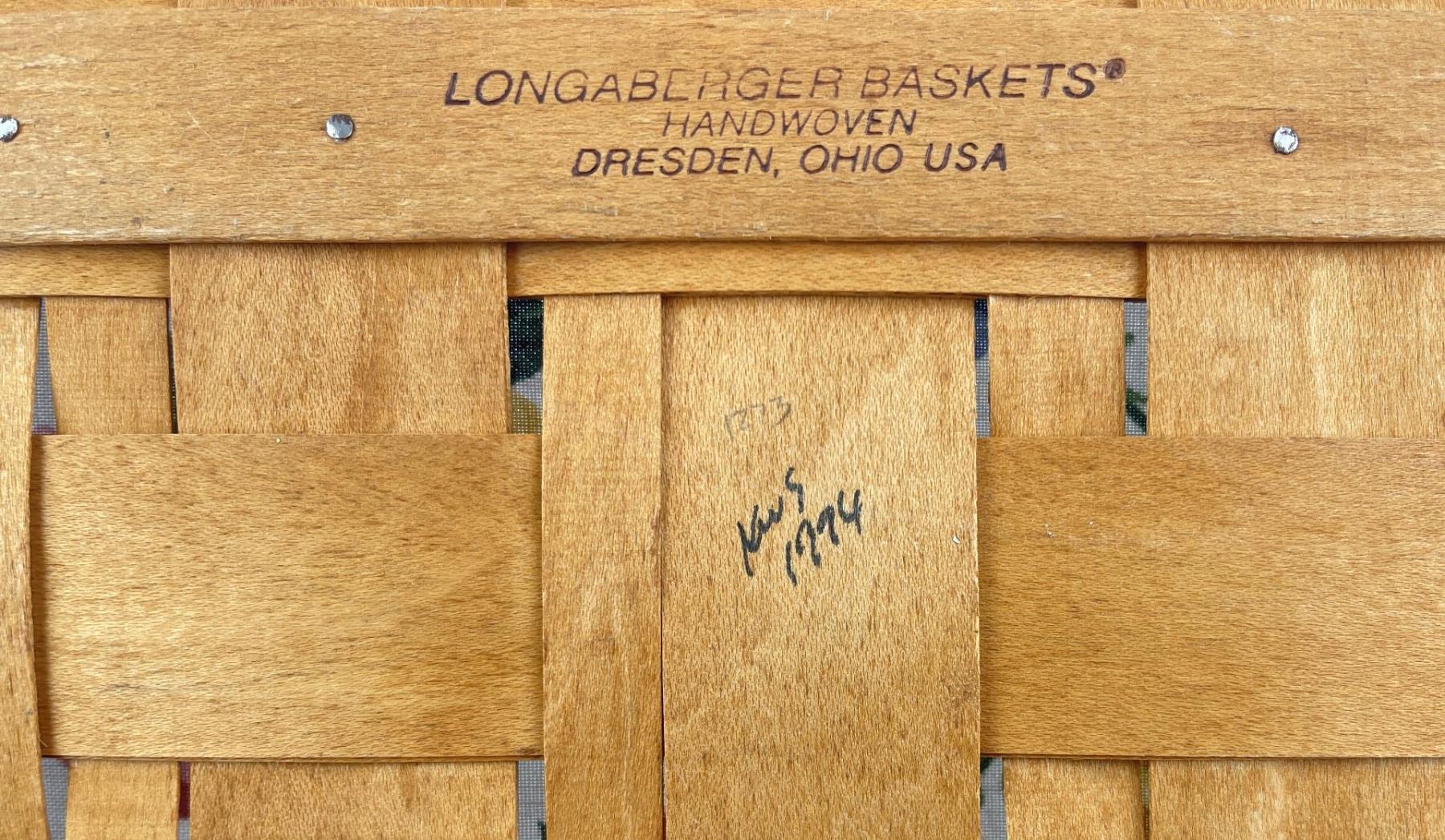 Nice basket with liner. Dated 1994. 11" tall, 12" by 12" wide.