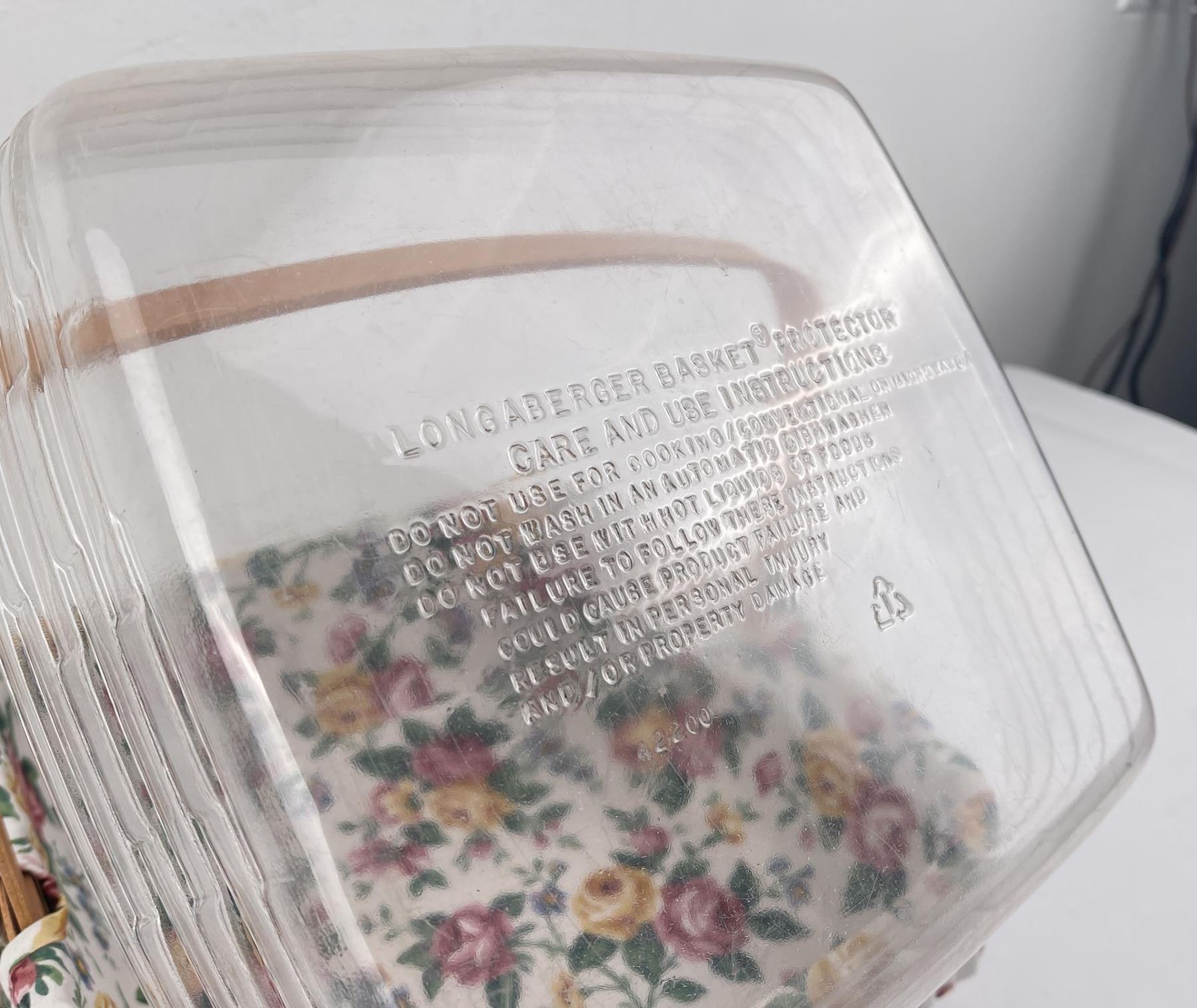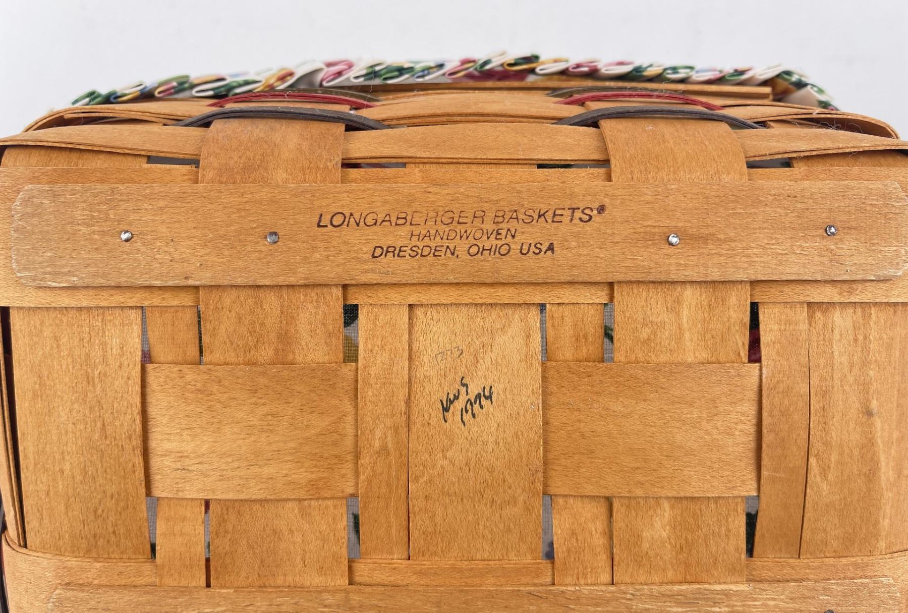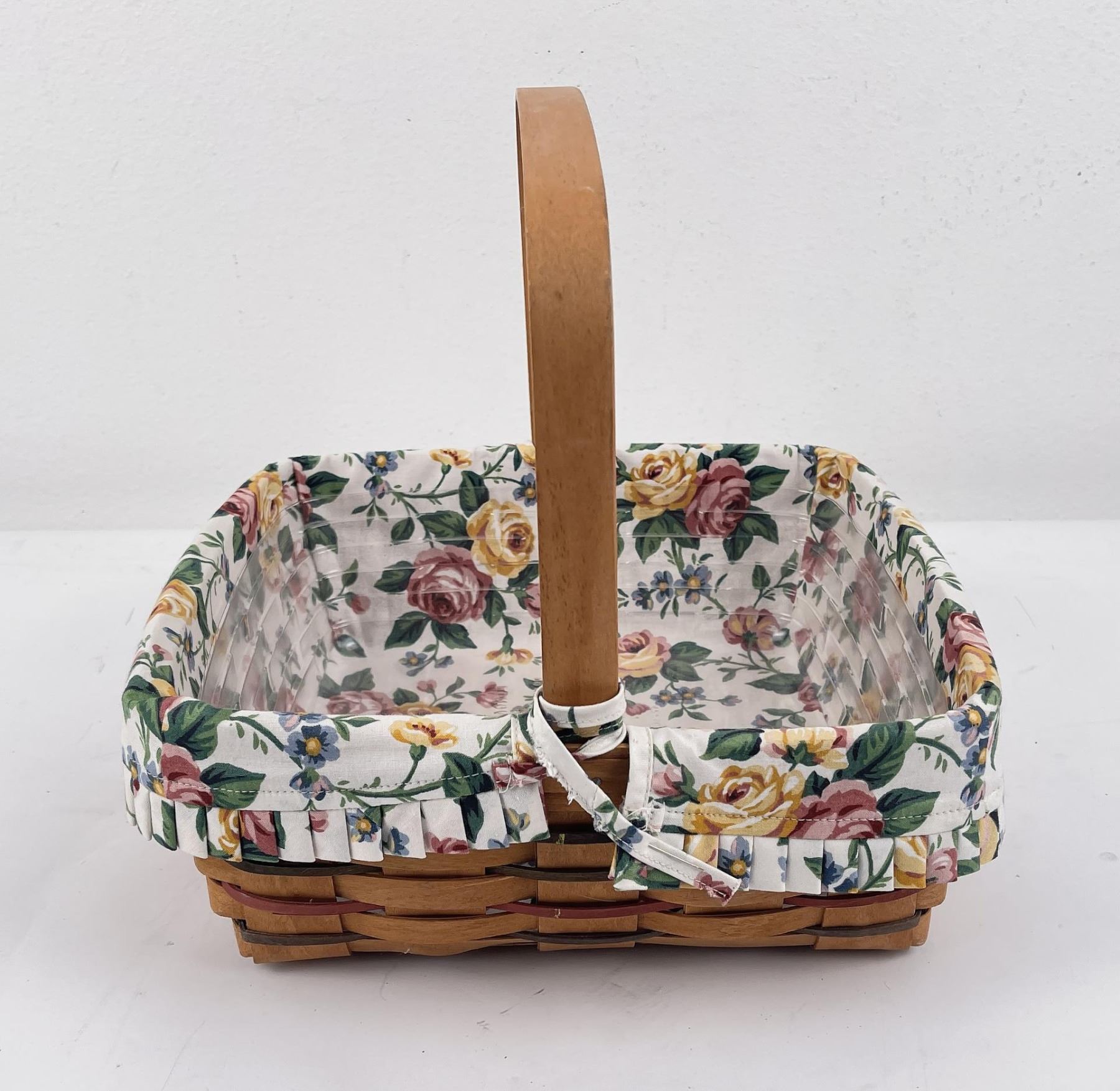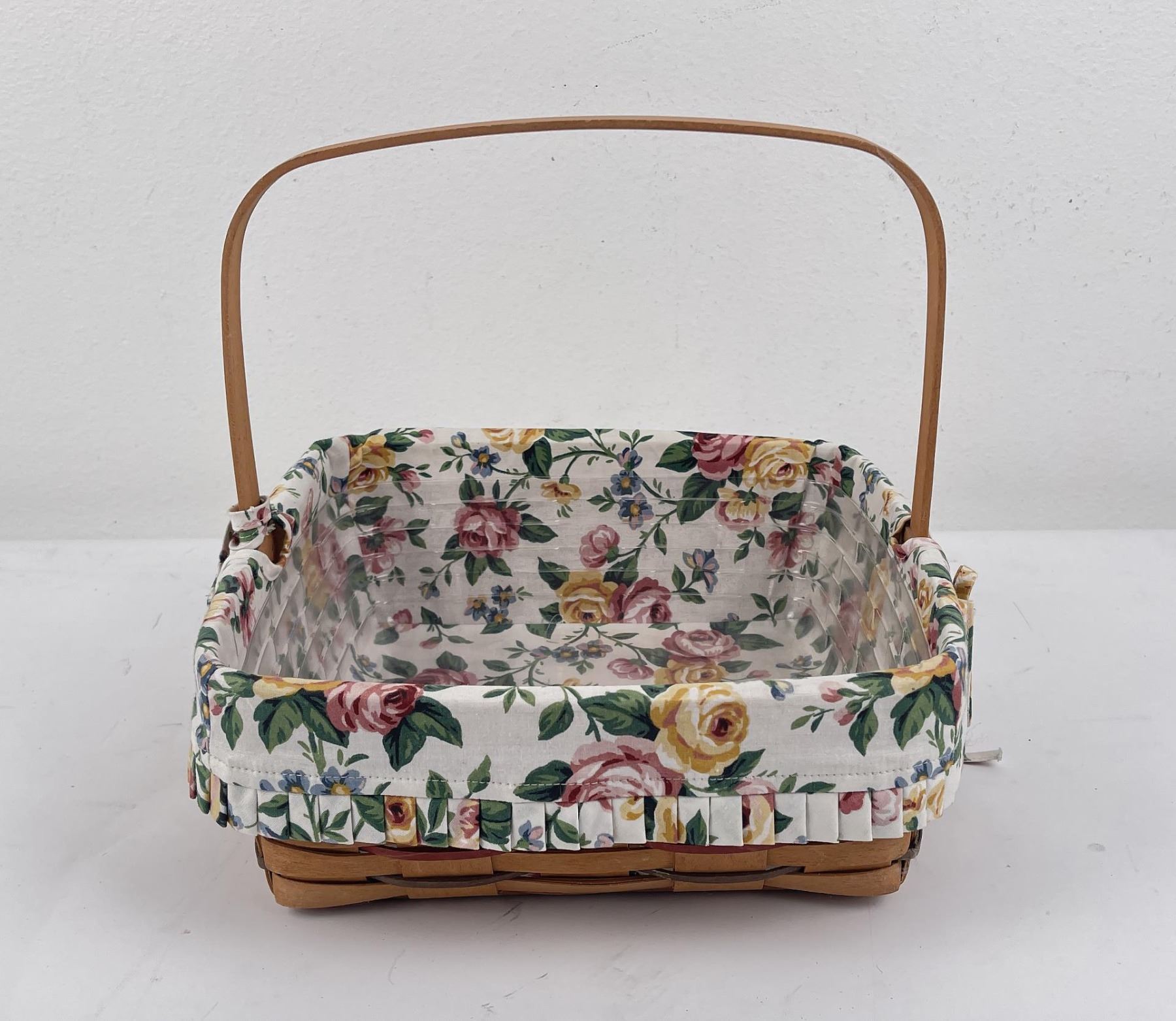 Nice basket with liner. Dated 1994. 11" tall, 12" by 12" wide.